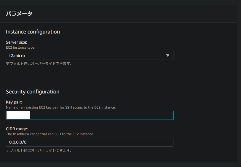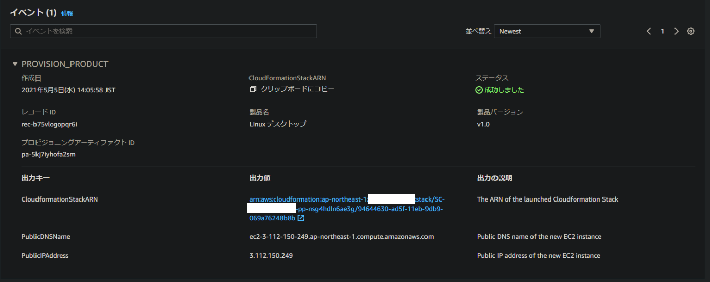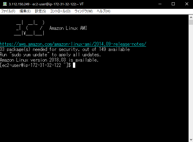 コンソールに表示されたパブリックIPにSSHでログインできることも確認できたので、CloudFormationによるEC2構築はうまくいったようです。