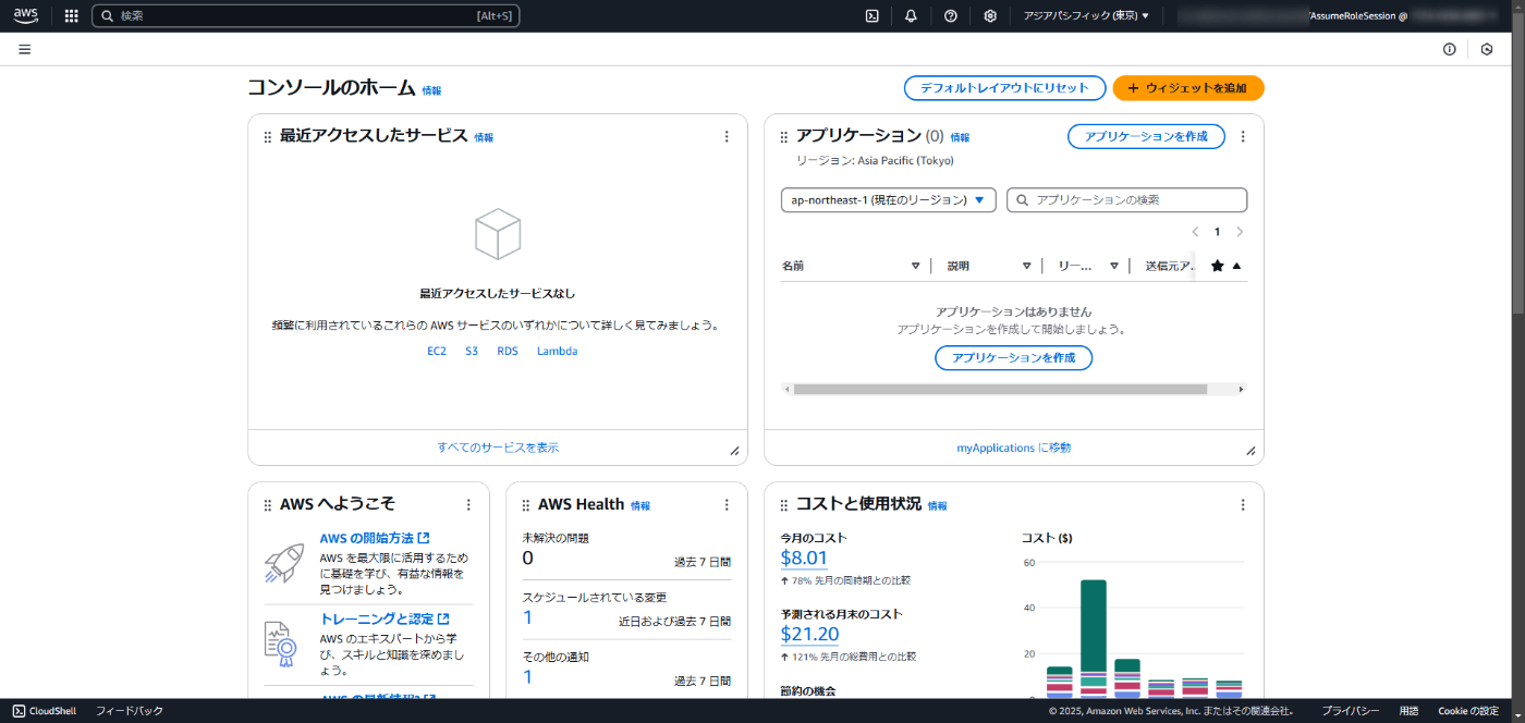 この URL をシークレットウィンドウや別のブラウザで開くと、assumed_role_object で指定した IAM ロールの権限でコンソールにアクセスできます。