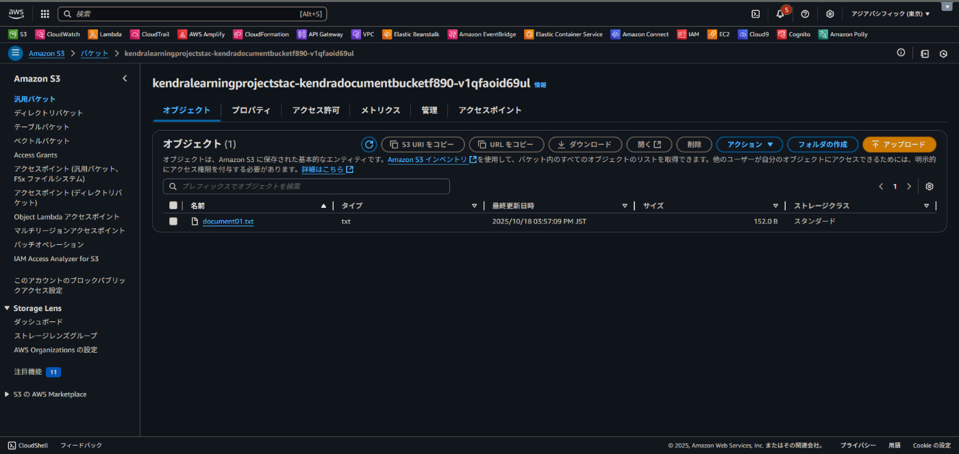 CDK で作成した S3 バケットに以下のテキストファイルをアップロードしました。
