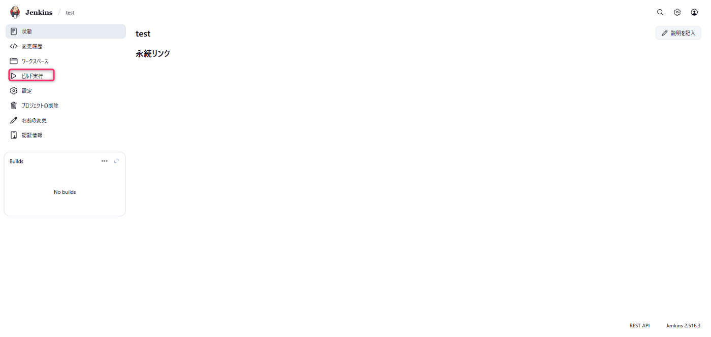 Jenkins のトップページから「新規ジョブ作成」をクリックします。