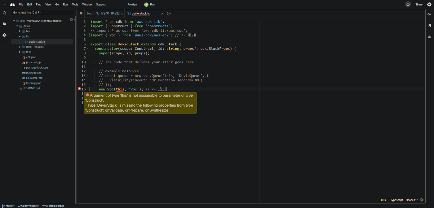 import { Vpc } from '@aws-cdk/aws-ec2'; // <- 追加