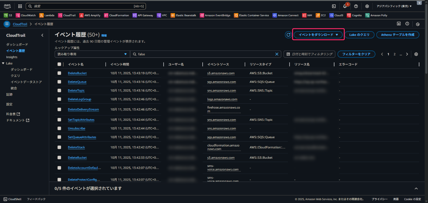 CloudTrail のイベント履歴を簡便に調査できる機能としては CloudTrail Lake があります。