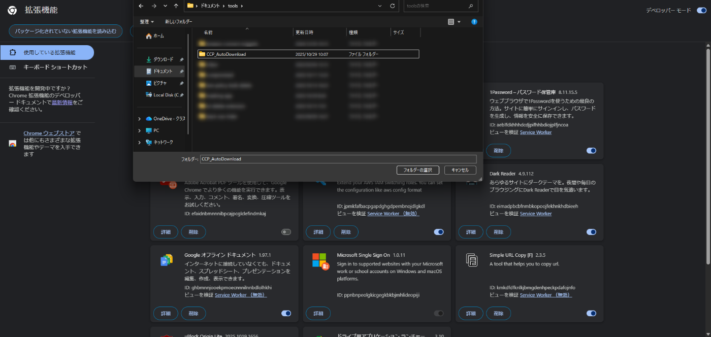 Chrome の拡張機能のページから手順 1 で作成したフォルダを読み込みます。