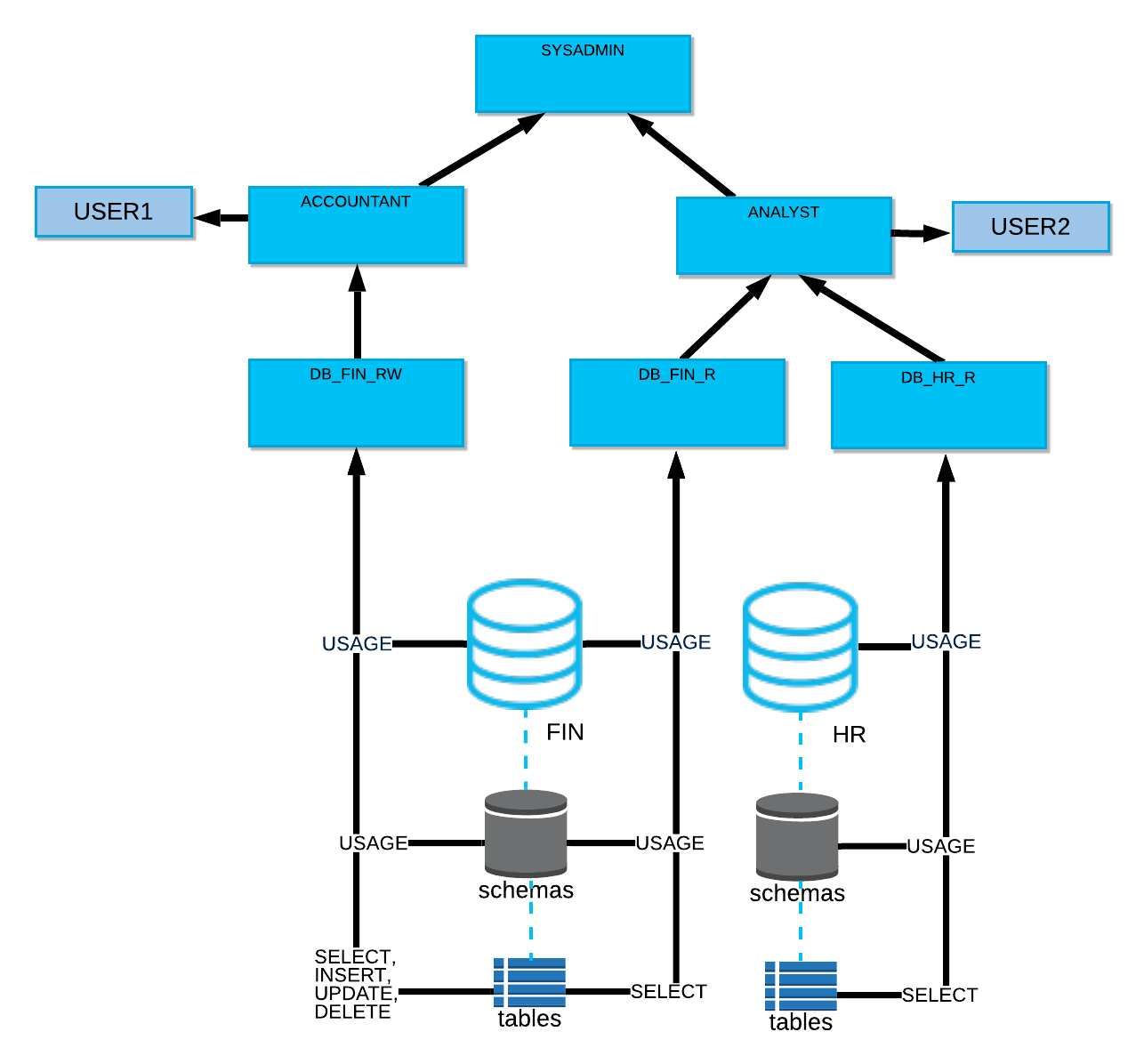 上記のようなロール設計でも、特に問題とはなりませんし、正しい解答ではありますが、Snowflakeの特徴を活かしたロール設計であるとは思えないため、1つの例を提示しようと思います。