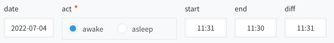 | act | 就寝(asleep)または起床(awake) | ラジオボタン |