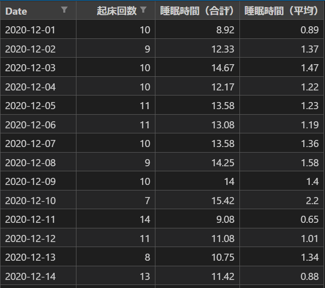 今回はトライアルということで、「睡眠」に焦点を当ててデータを可視化したいと思います。