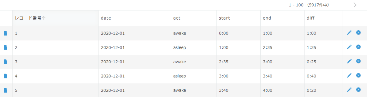 せっかくなら意味のあるデータを扱ってみたいので、今年2歳になる息子の育児記録を拝借することにしました。