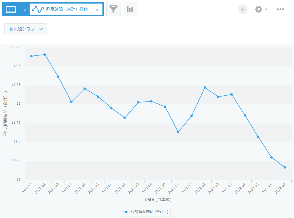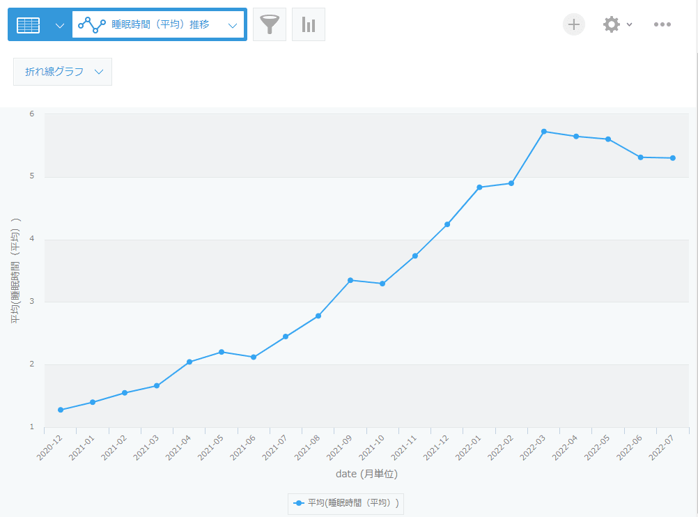 例えば「睡眠時間(平均)」の月別推移を見たいときは、以下の通り指定します。