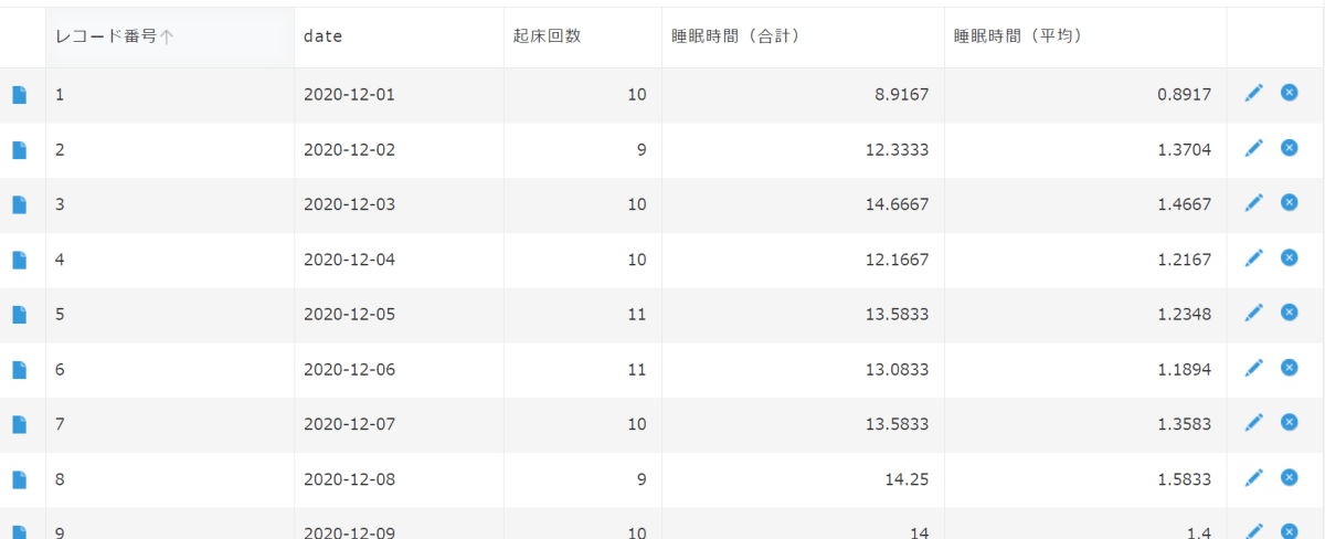 - 睡眠時間(平均)→睡眠1回あたりの平均睡眠時間