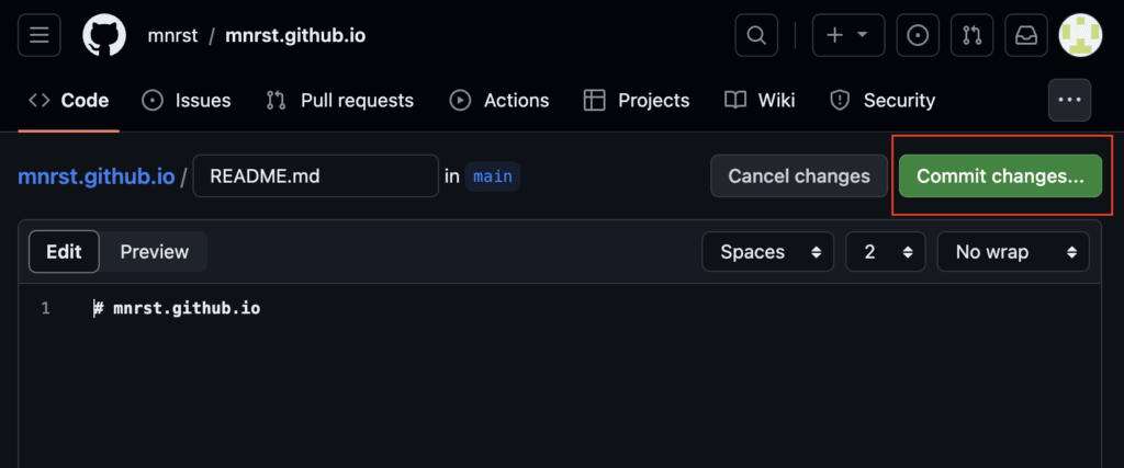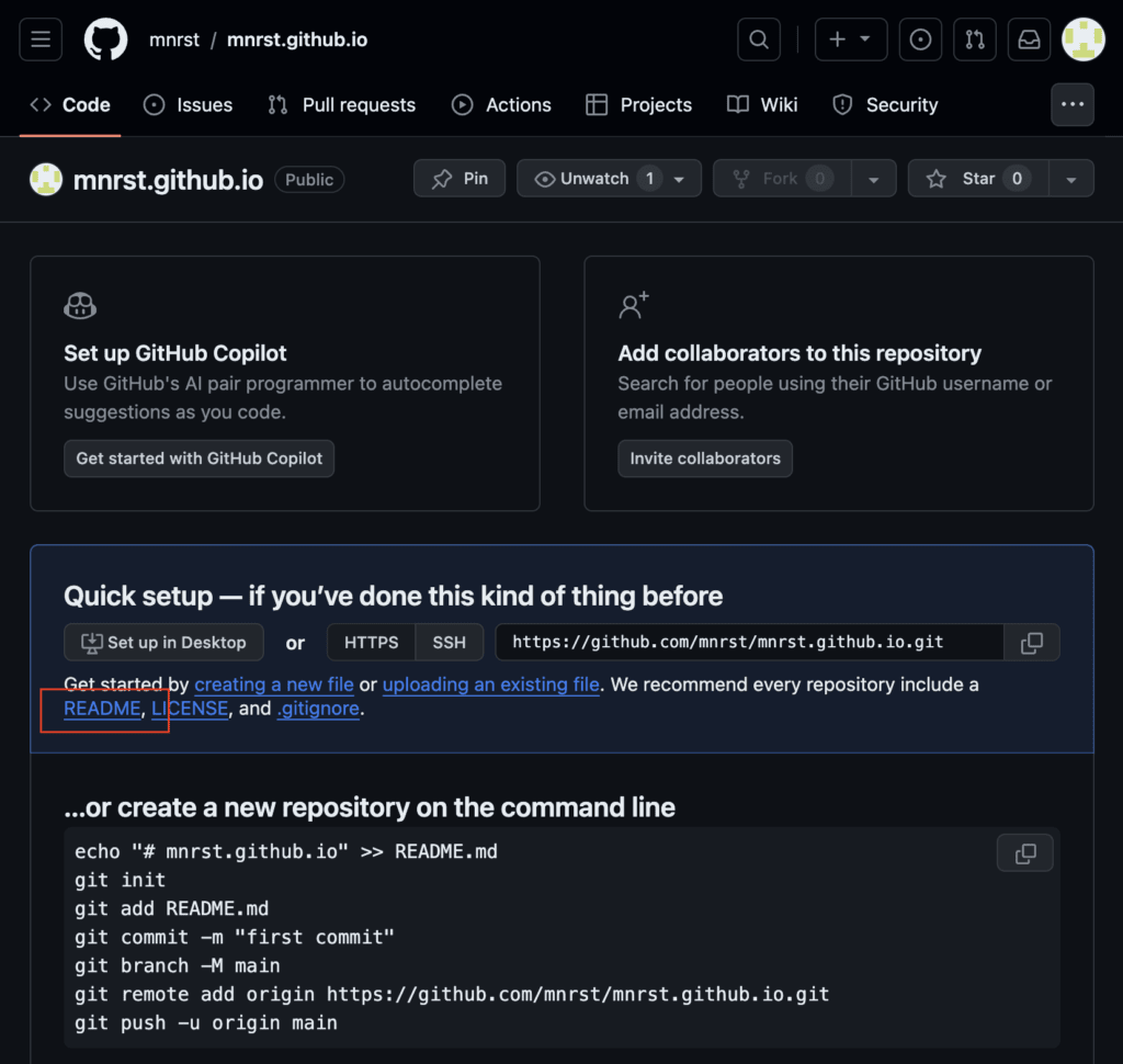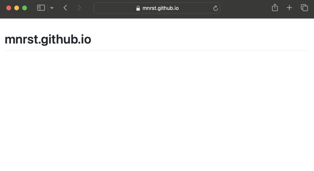 https://mnrst.github.io/ にアクセスして、README.md の内容が Web サイトとして表示されました。