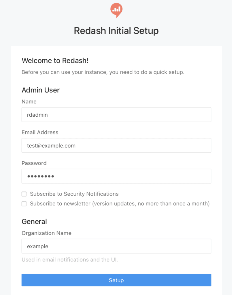 Redash の初期設定で管理者を作成