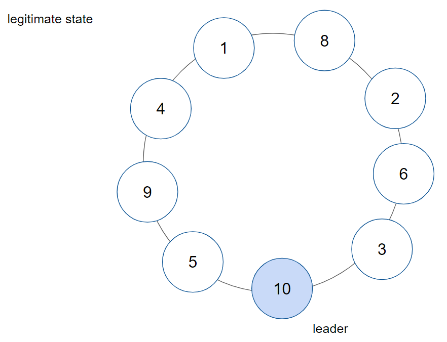 最初はlegitimate stateになっているリーダー選挙アルゴリズムを例に説明します。