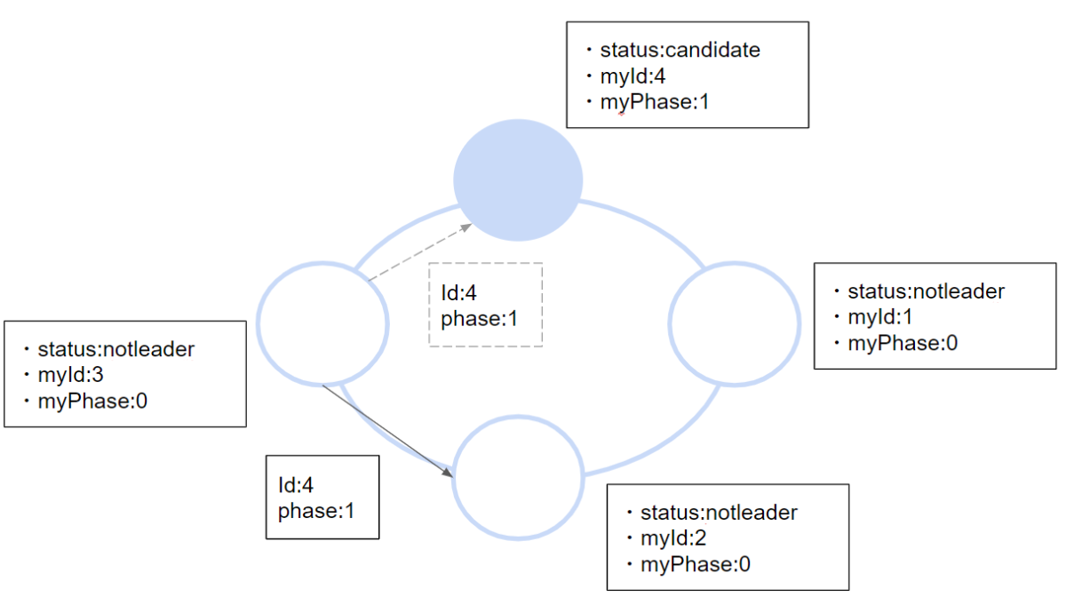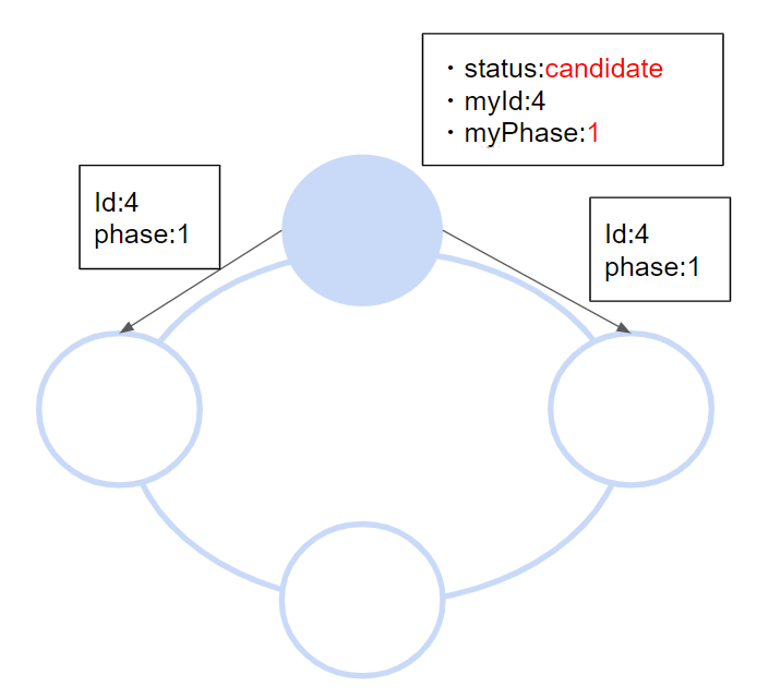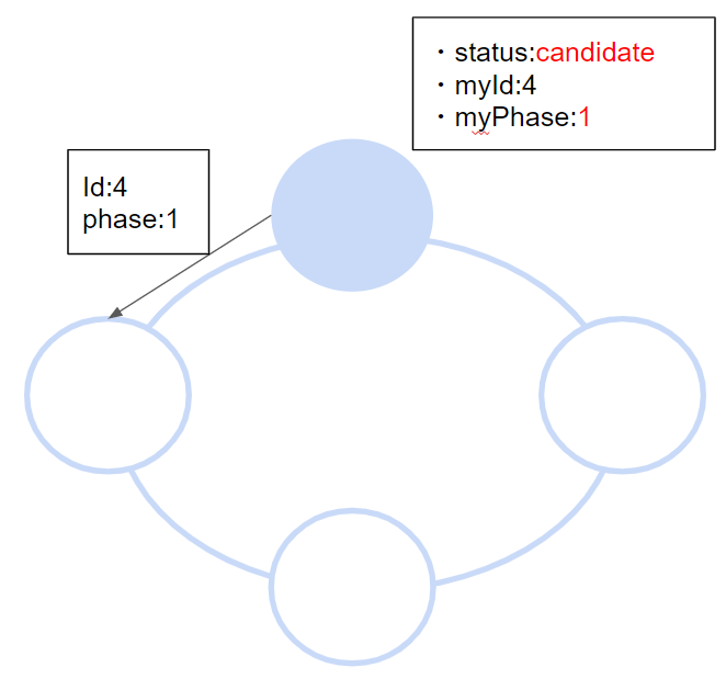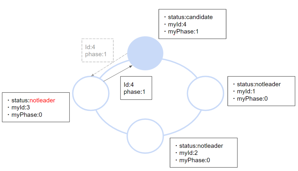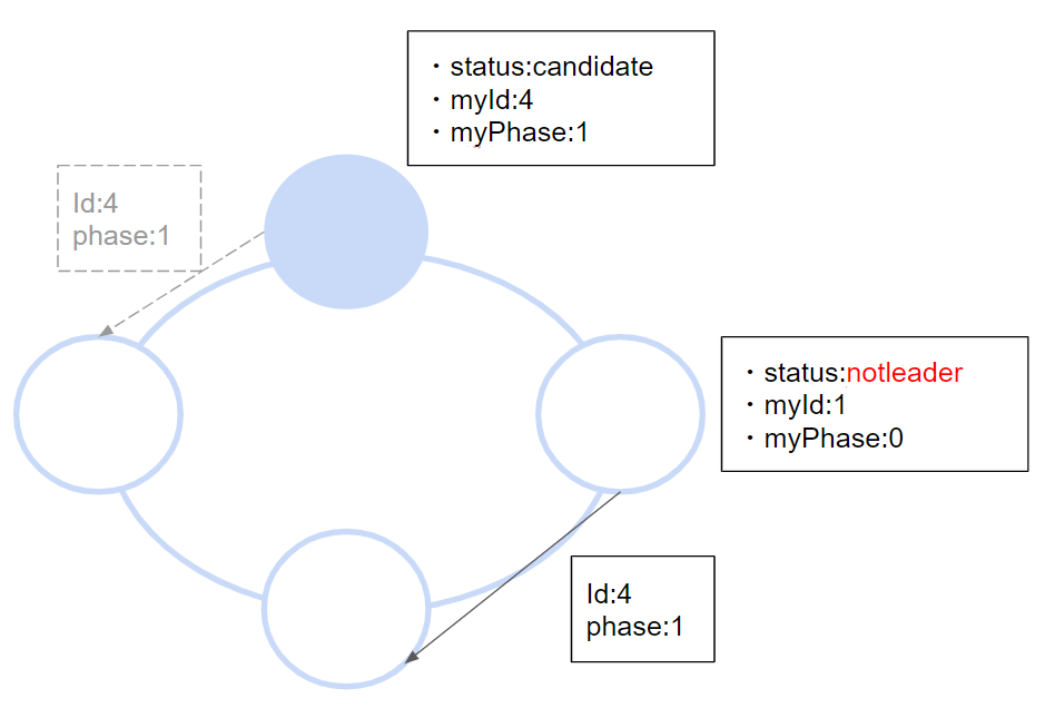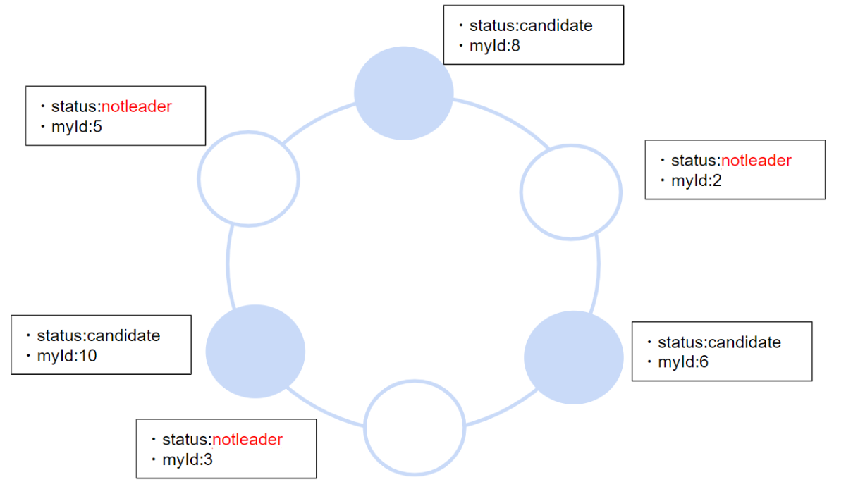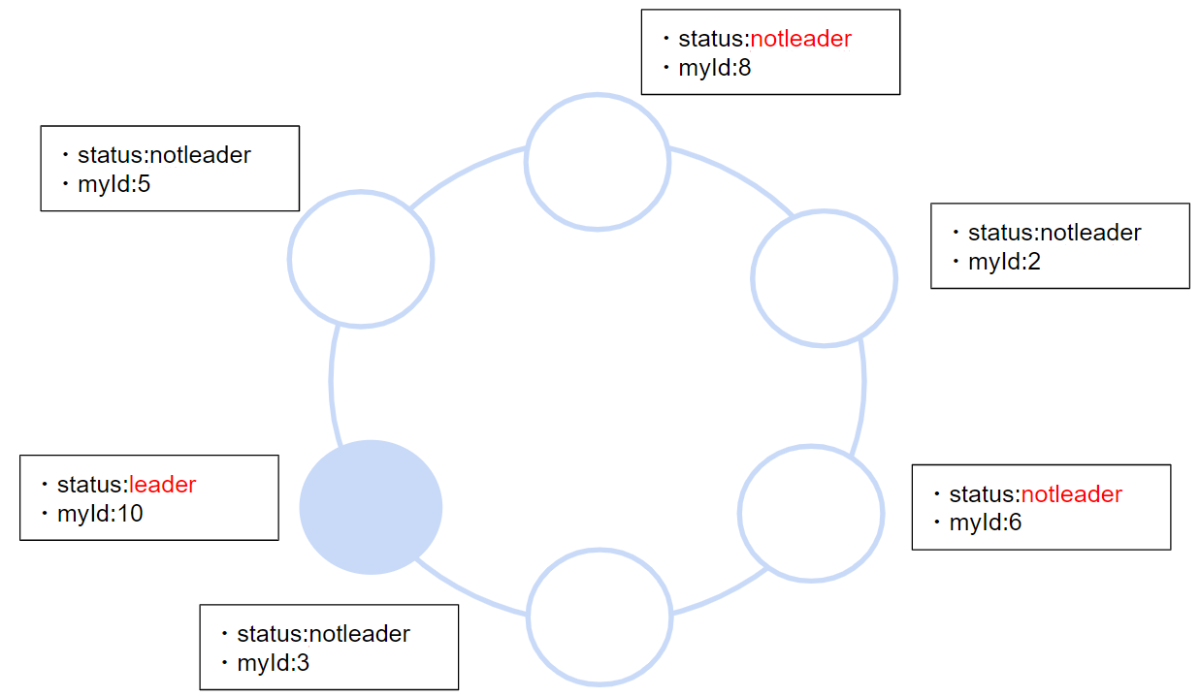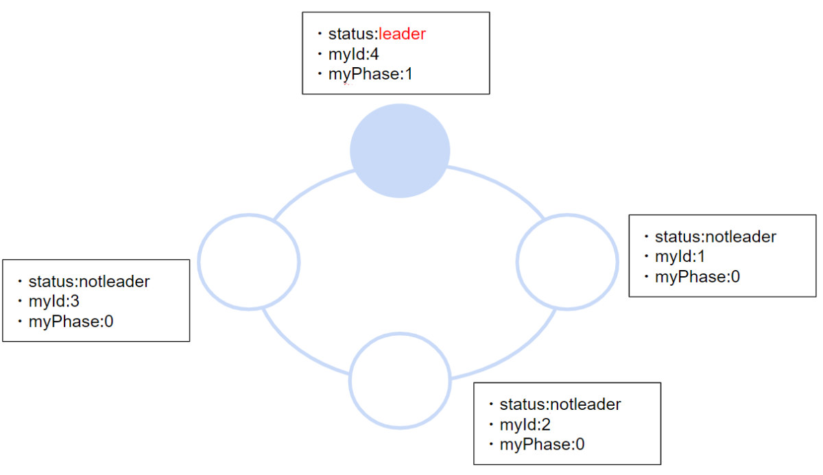 最終的には自分のIDが1周したプロセスがリーダーになります。