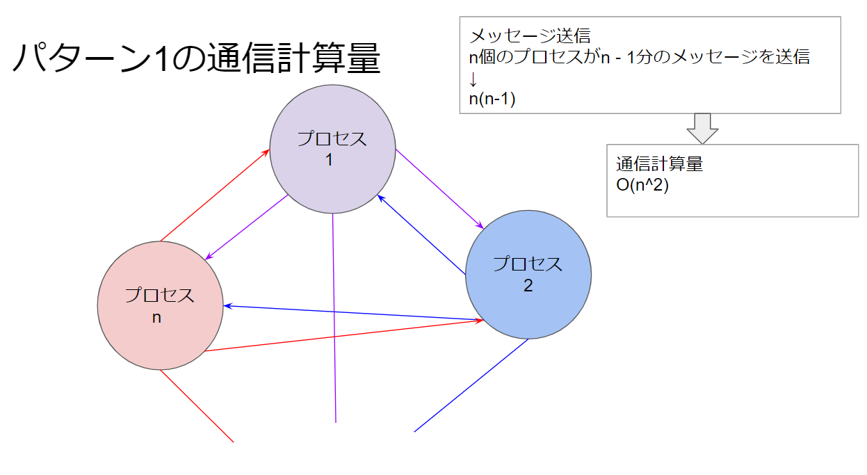 n個のプロセスが(n-1)分のメッセージを送信するので、