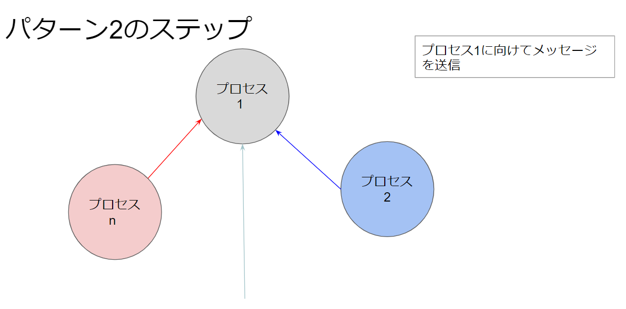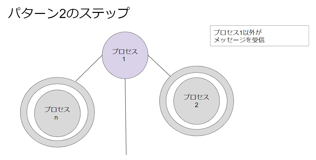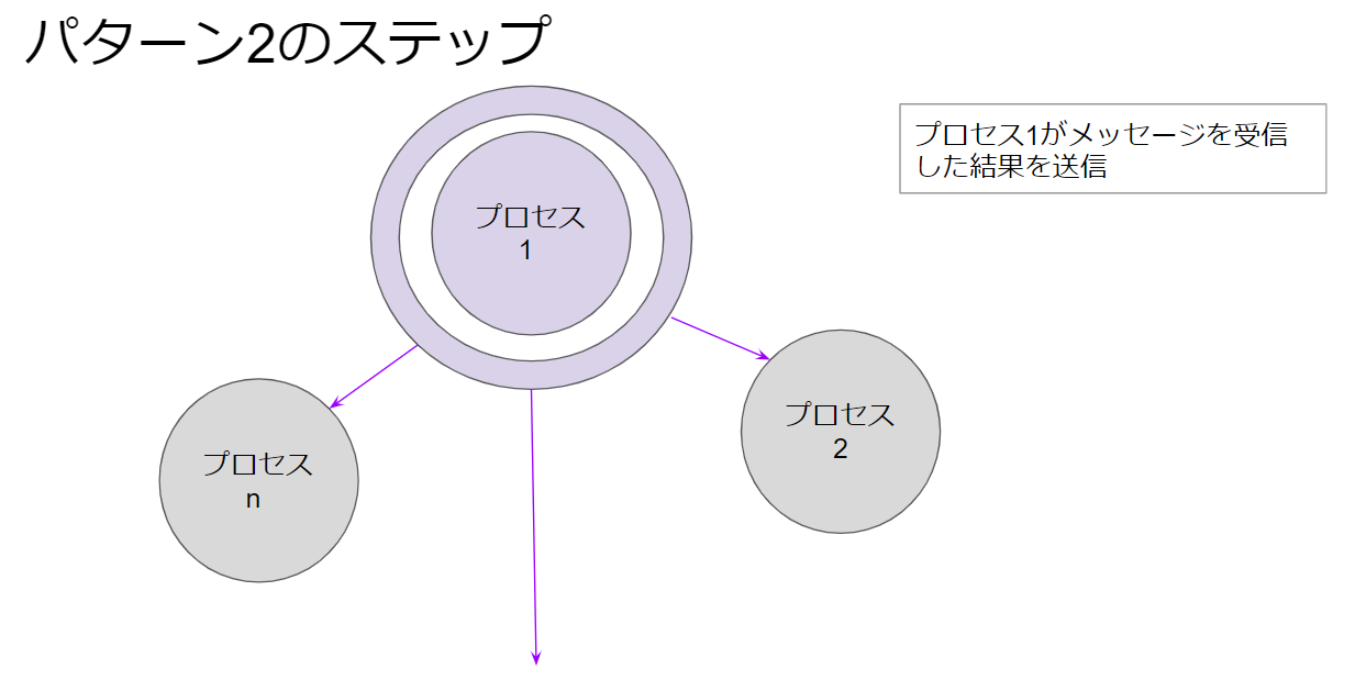プロセス1は、受信したメッセージを各プロセスに送信します。