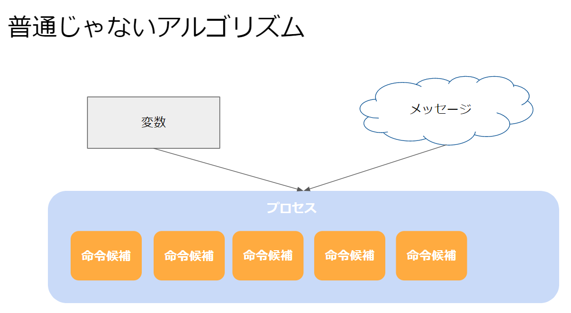 「普通」じゃないアルゴリズムは命令の候補があって決まり切りません。