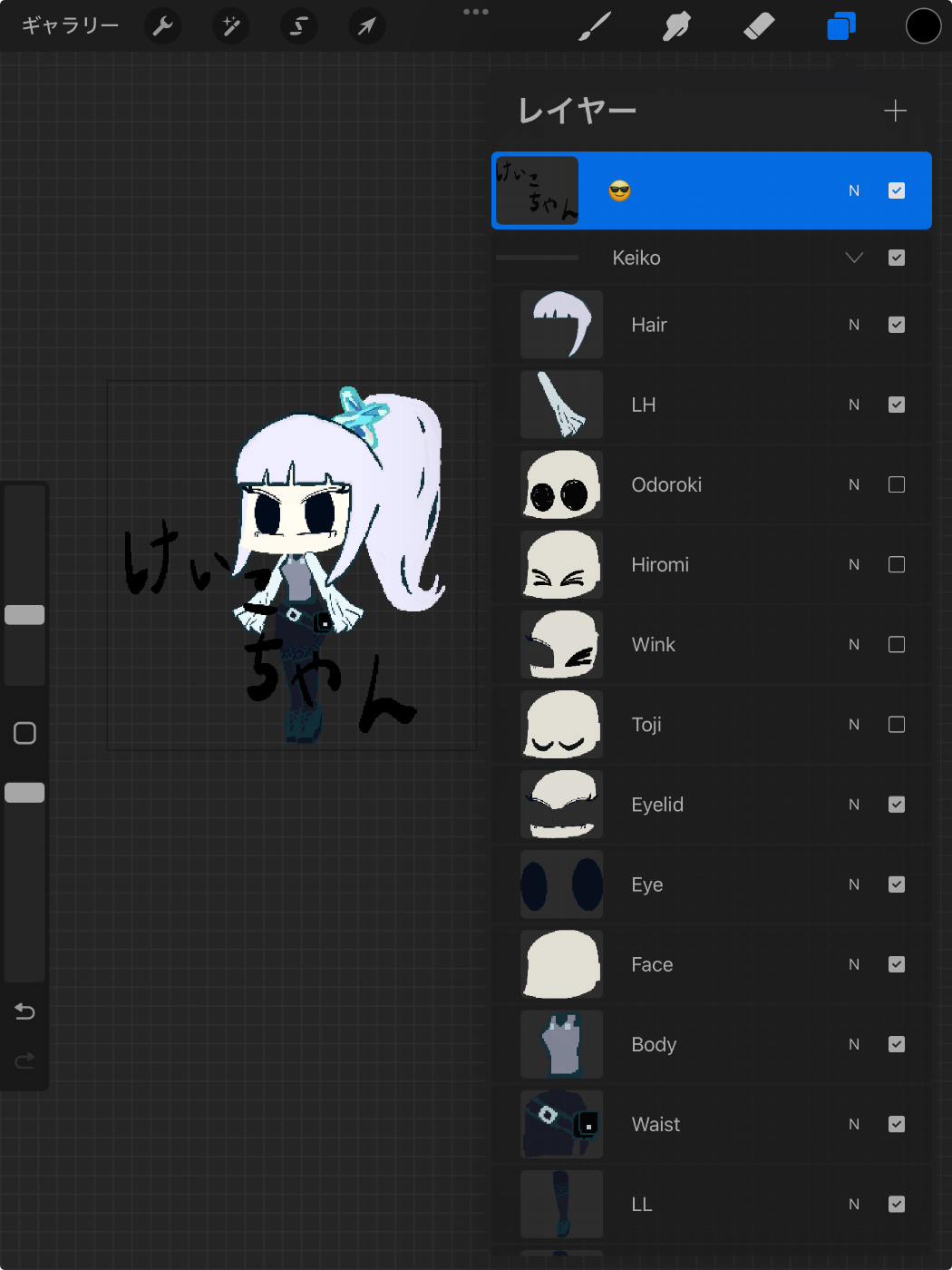 瞬きや驚いた時などの特殊な表情は上からレイヤーを被せることで表現します。
