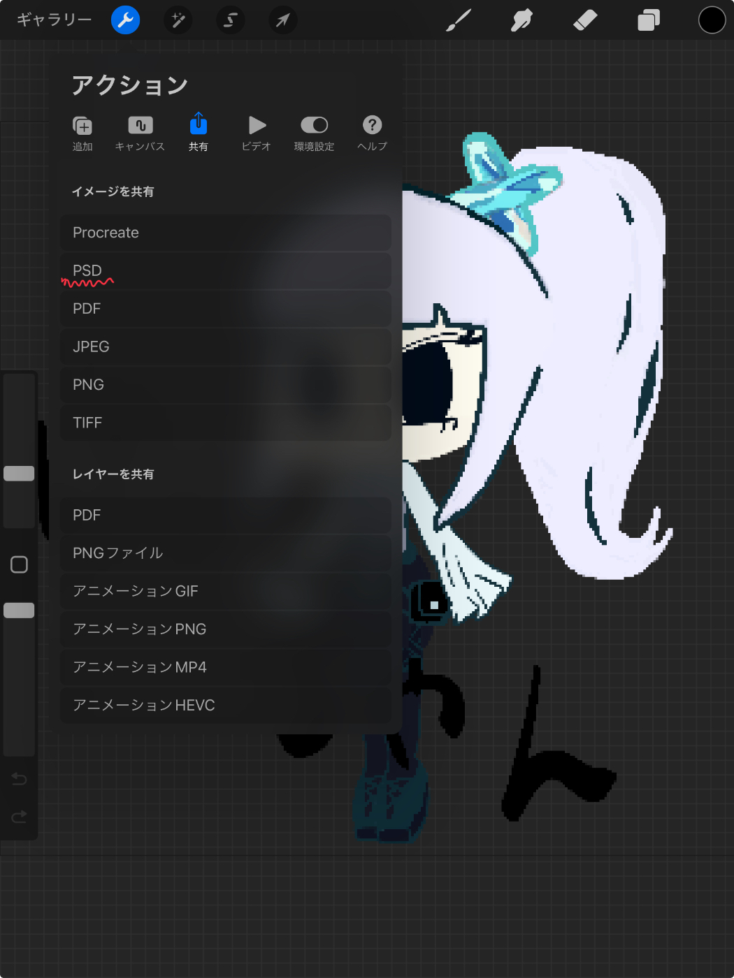 ProcreateはPSBが出せないのでPSDで出力して、後からPSBに拡張子を変えます。エクセルの拡張子をZIPにすると展開できるみたいなアレです。