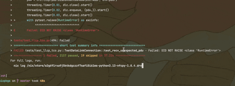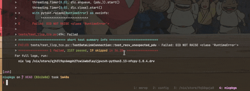 Nix ではビルドに失敗した時に nix log サブコマンドを利用して、ビルド失敗したパッケージのビルドログを参照することができます。