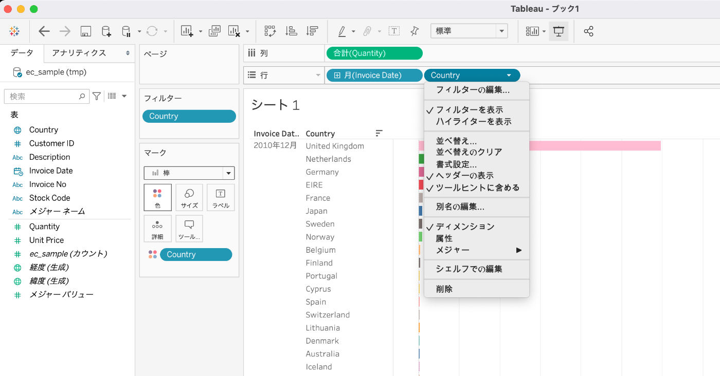 Eコマースでの売り上げを見るときに、月毎かつ各国別の数量のランキングTop Nを見れるようにしたい