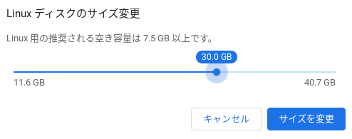 chromebook上のLinux用のディスクサイズを拡張するTipsです。