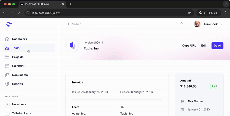 これで完成です。簡単にできて嬉しいですね!これで、表示が重いページの遷移もフィードバックがあってユーザも嬉しいでしょう。