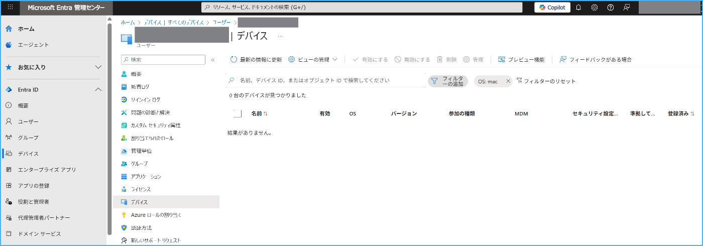 - 一方、ユーザに紐づくデバイスとしてはMicrosoft Entraでの表示はされません