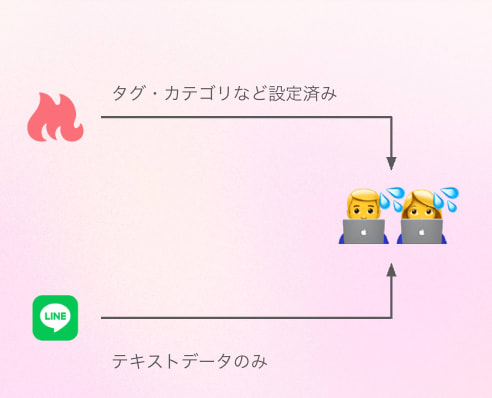 LINEなど外部メッセンジャーからの問い合わせはテキスト本文のみが登録されます。