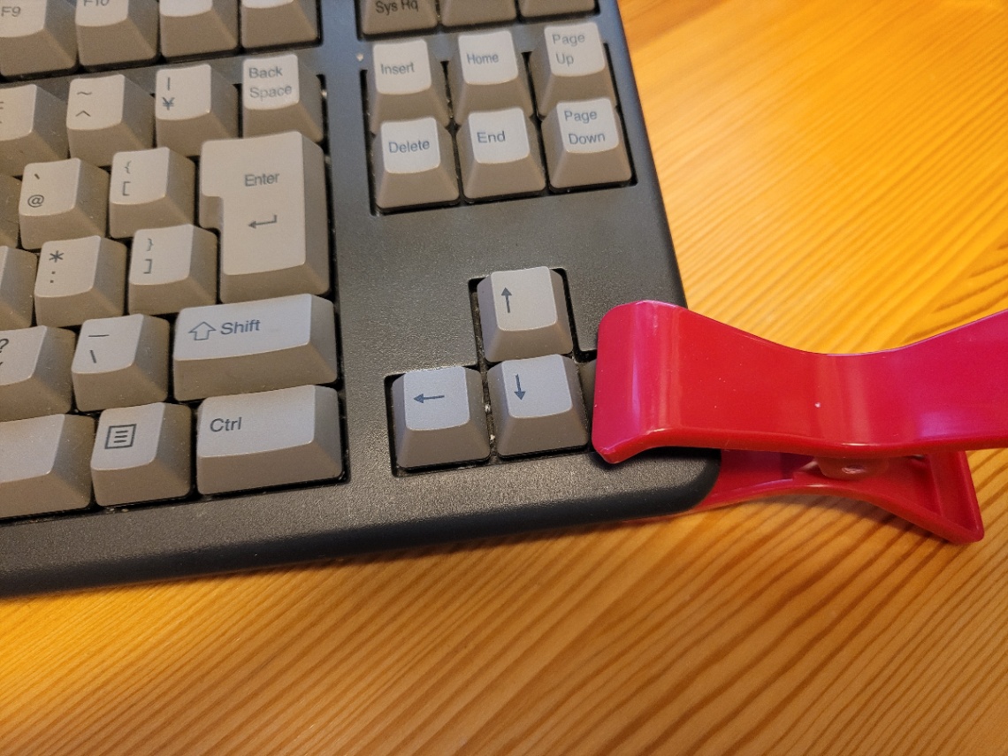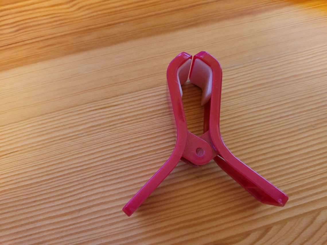 例えば 100 均のスマホスタンド用クリップを挟んで対応などもできると思います。