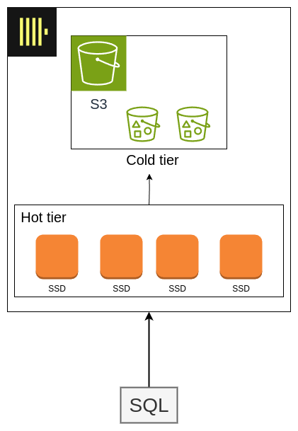 S3は外部ソース扱い。「遅くてもいいから大容量を保存したい」ときにS3を使う。