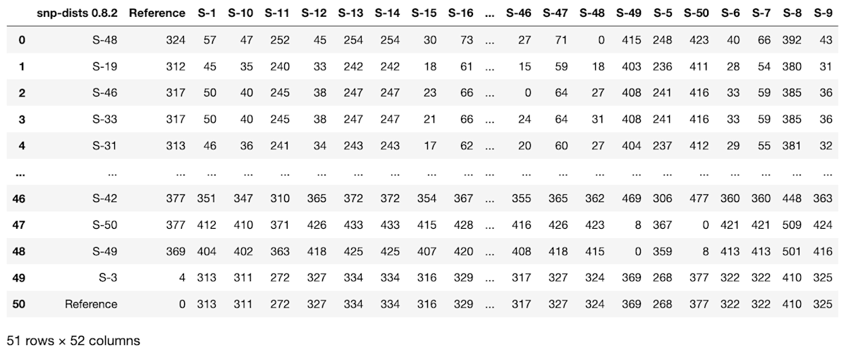 df5.rename(columns={'snp-dists 0.8.2': ''}, inplace=True)