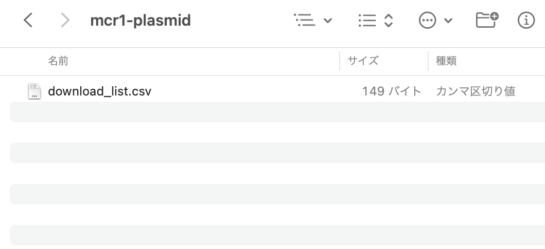 今回はダウンロード先のフォルダ名を「mcr1-plasmid」としました。