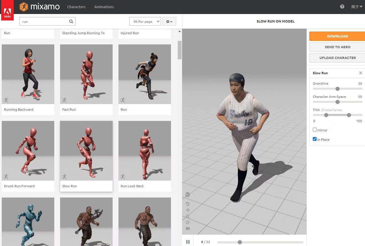 野球の動作はピッチャー、キャッチャー、バッター、アンパイアはあったのですが、野手がないので攻守交替で走る動作にしました。