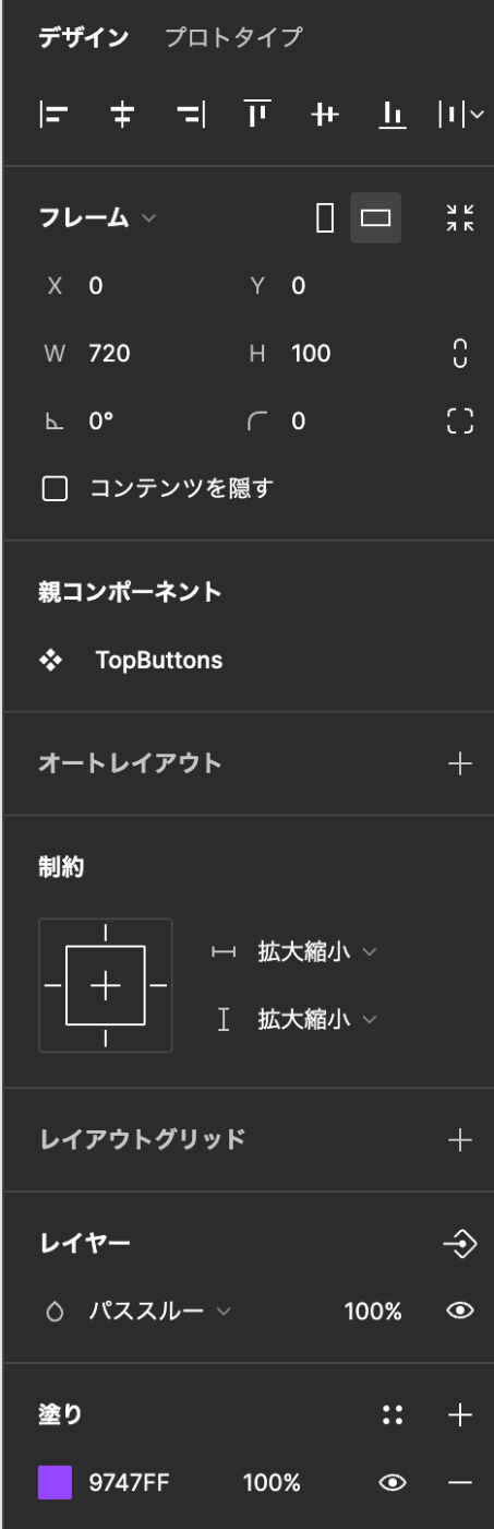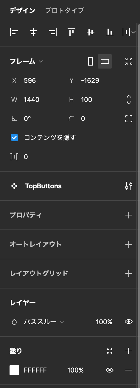 をクリックしてTopButtonsLeft Frame内でセンタリングし、