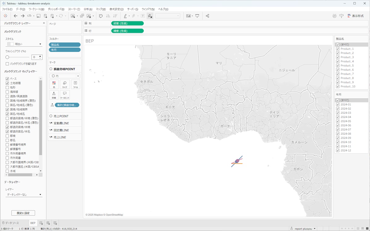 Tableauでマップを使って会計データから損益分岐点売上高を可視化する