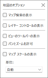 さらに、メニューの「マップ」→「地図のオプション」からチェックをすべてはずし、拡大縮小などはできないようにします。