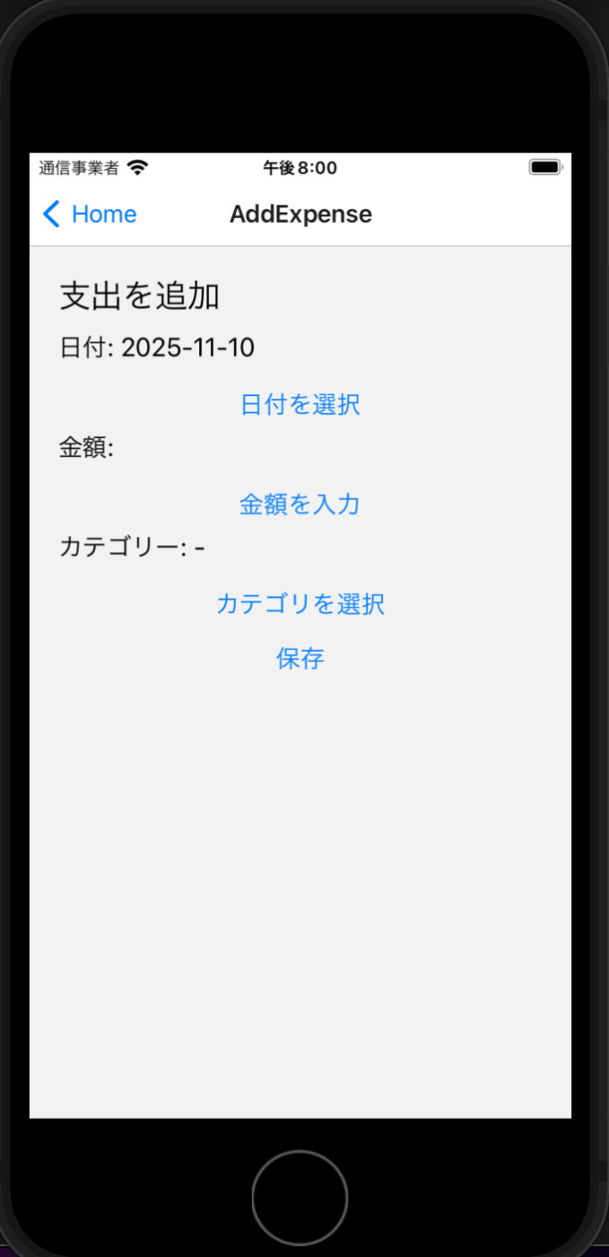 ●支出の金額、カテゴリ、年月日を登録できる ←今回の改善対象
