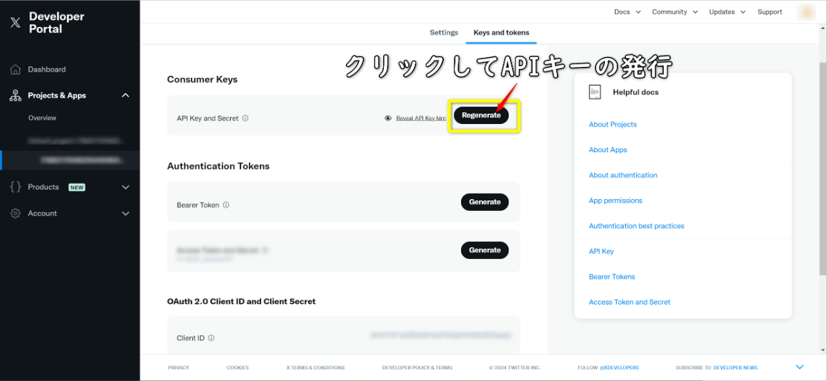詳しい解説は【コピペOK】X(旧Twitter)APIの取得方法と初期設定で公開しています。
