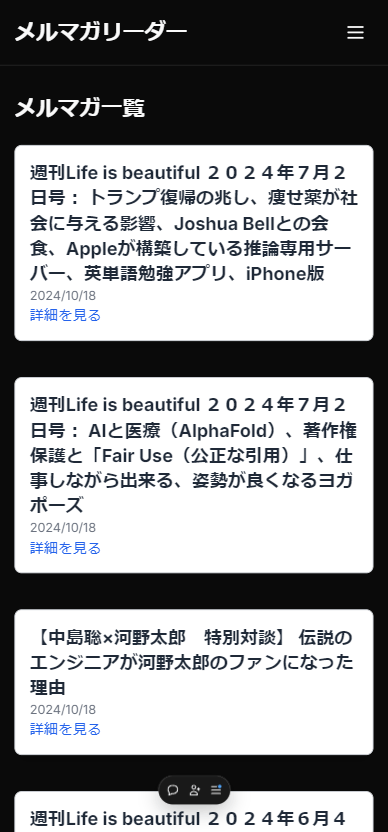 - リーダーアプリ:メルマガの前回読み終えた位置を記録し、次回は続きから読めるアプリ