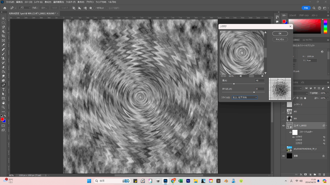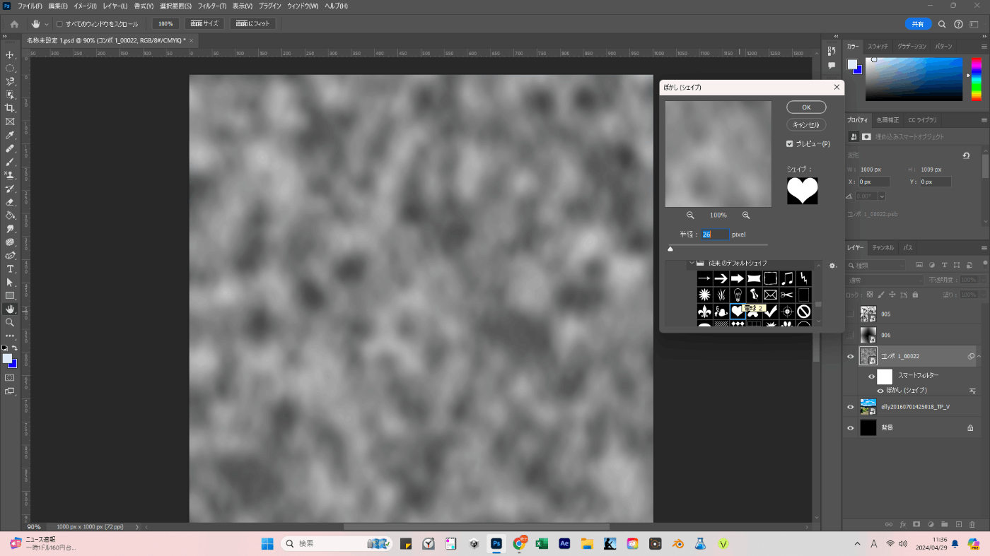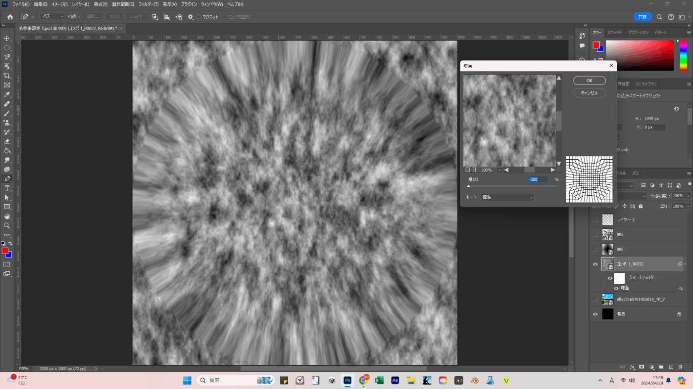 AfterEffectでシェイプを作成して、Photoshopの指先ツールでゆがませる