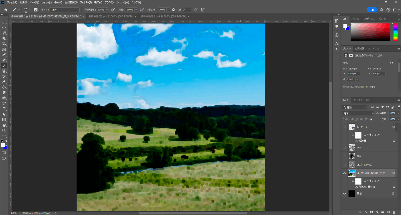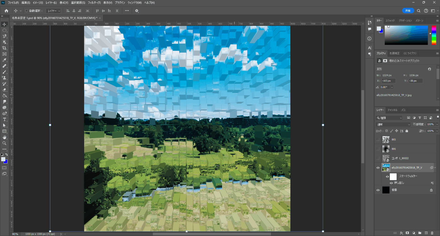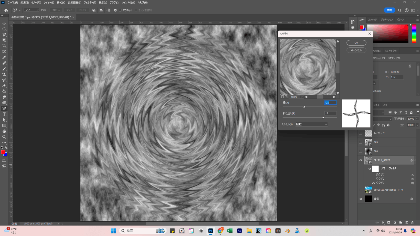 AfterEffectでシェイプを作成して、Photoshopの指先ツールでゆがませる