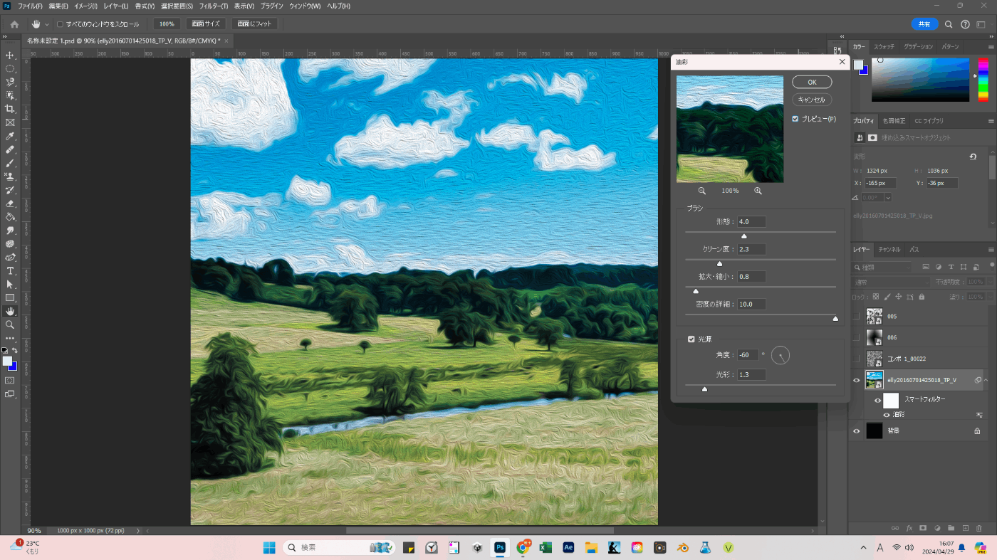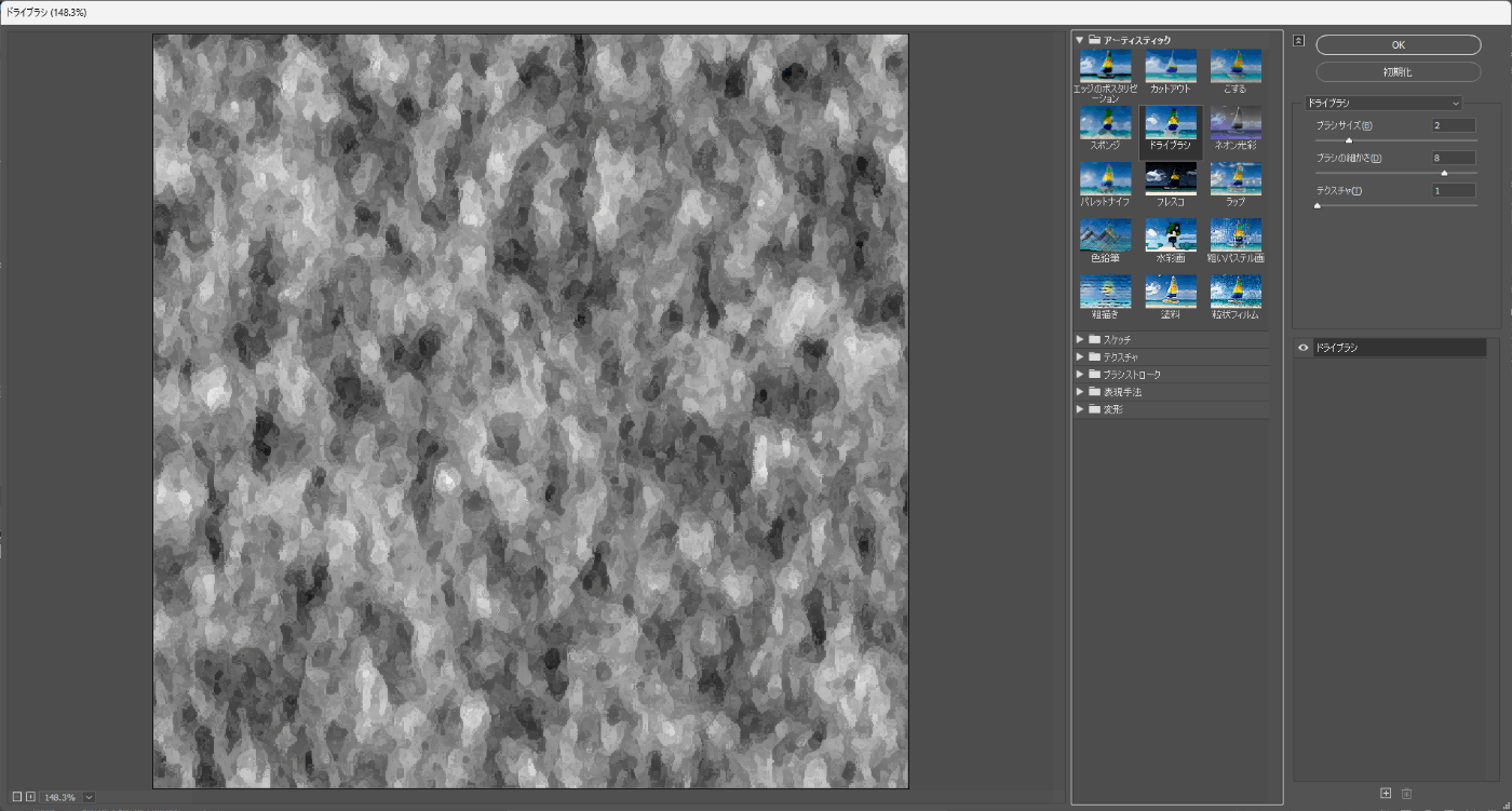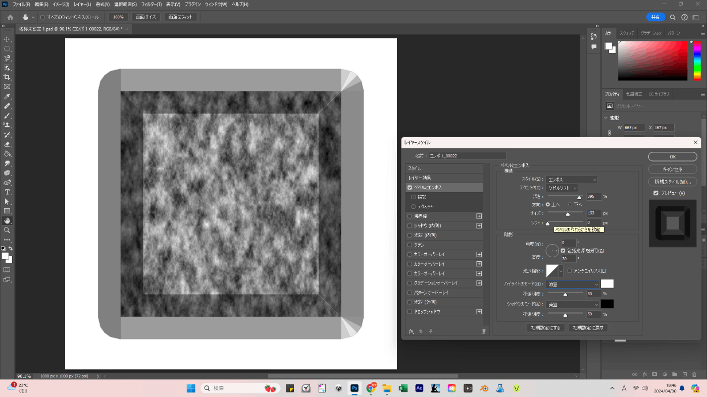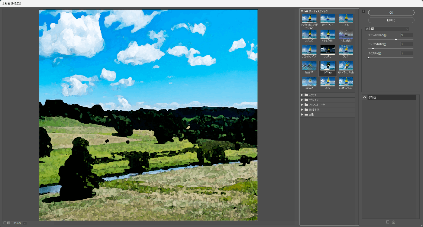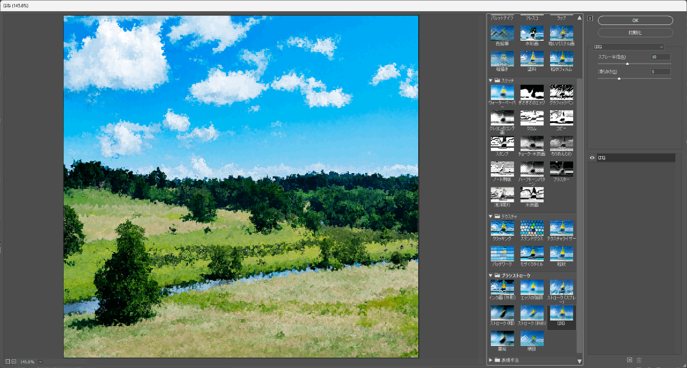 選択範囲またはレイヤーに 3D テクスチャを加えます。