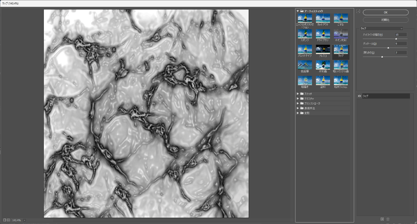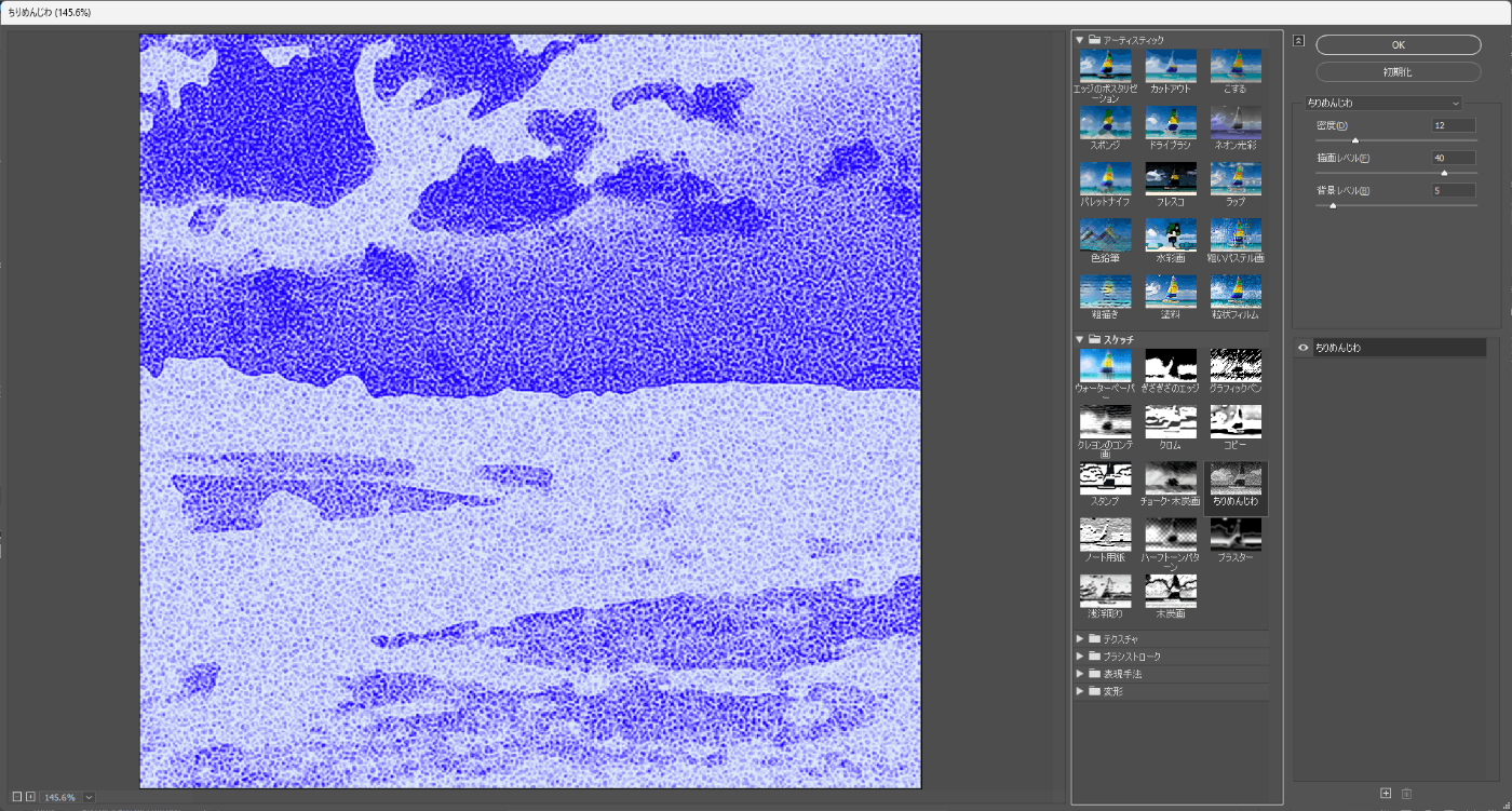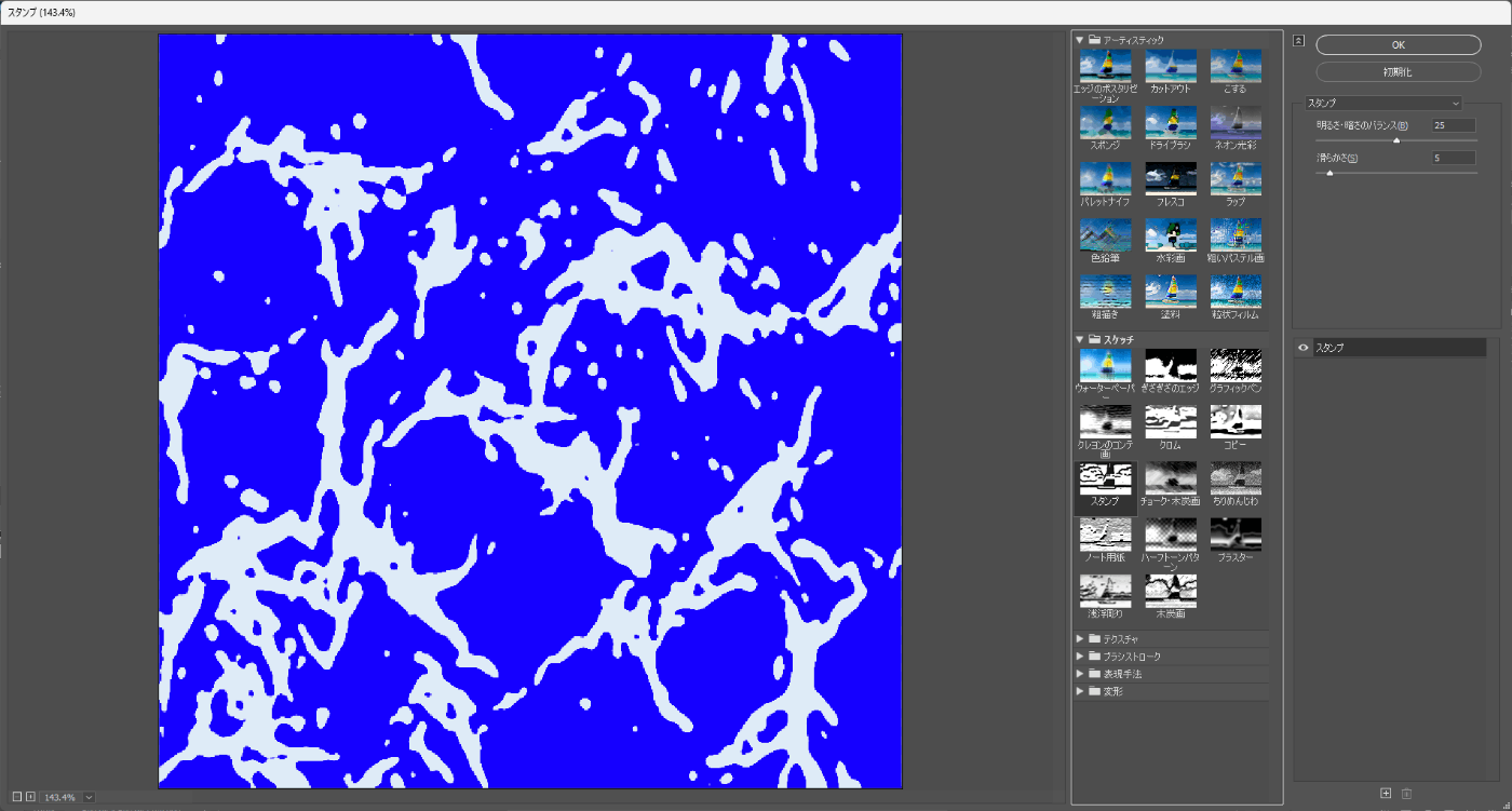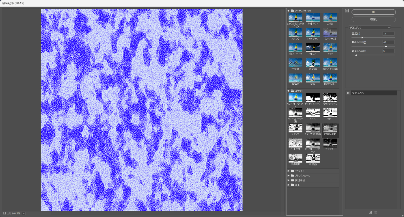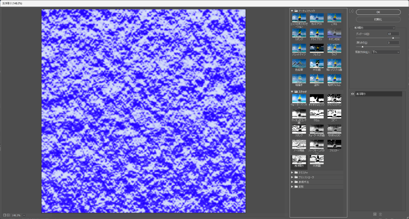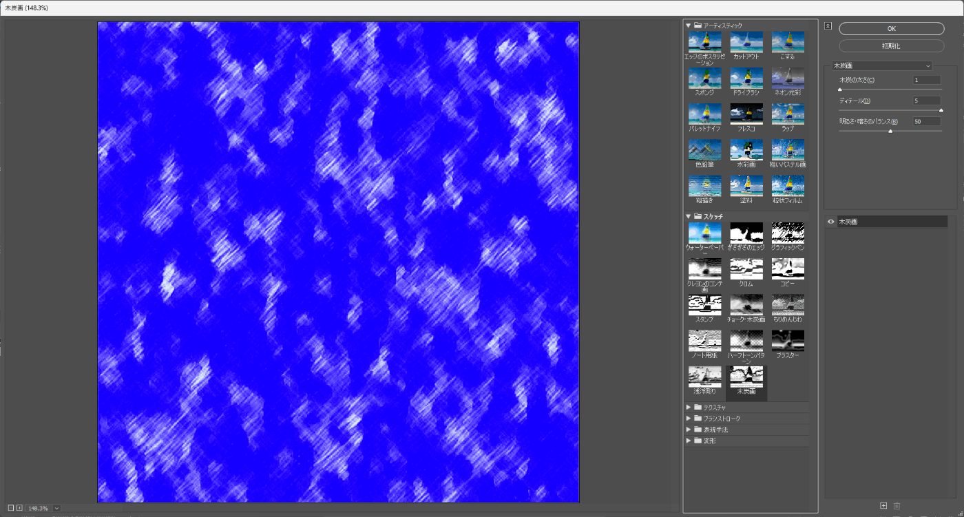 池の水面にできたさざ波のような、波打つパターンを選択範囲に作り出します。