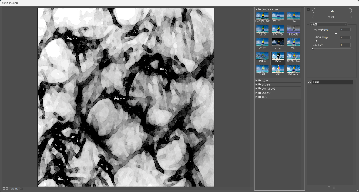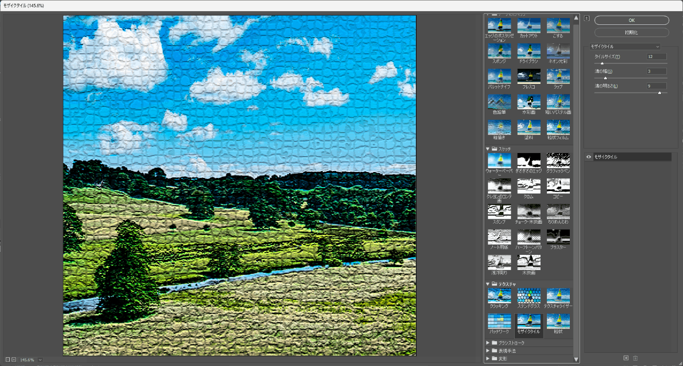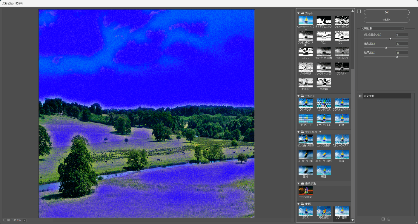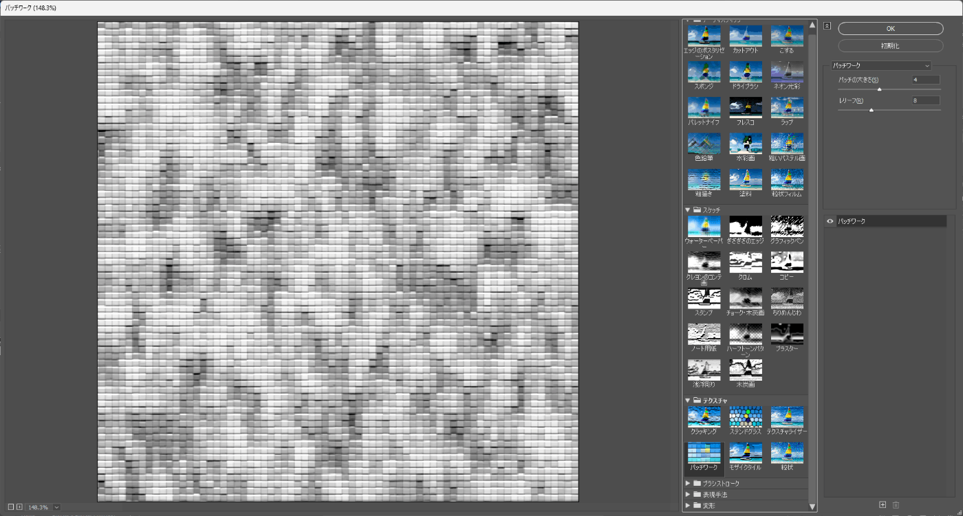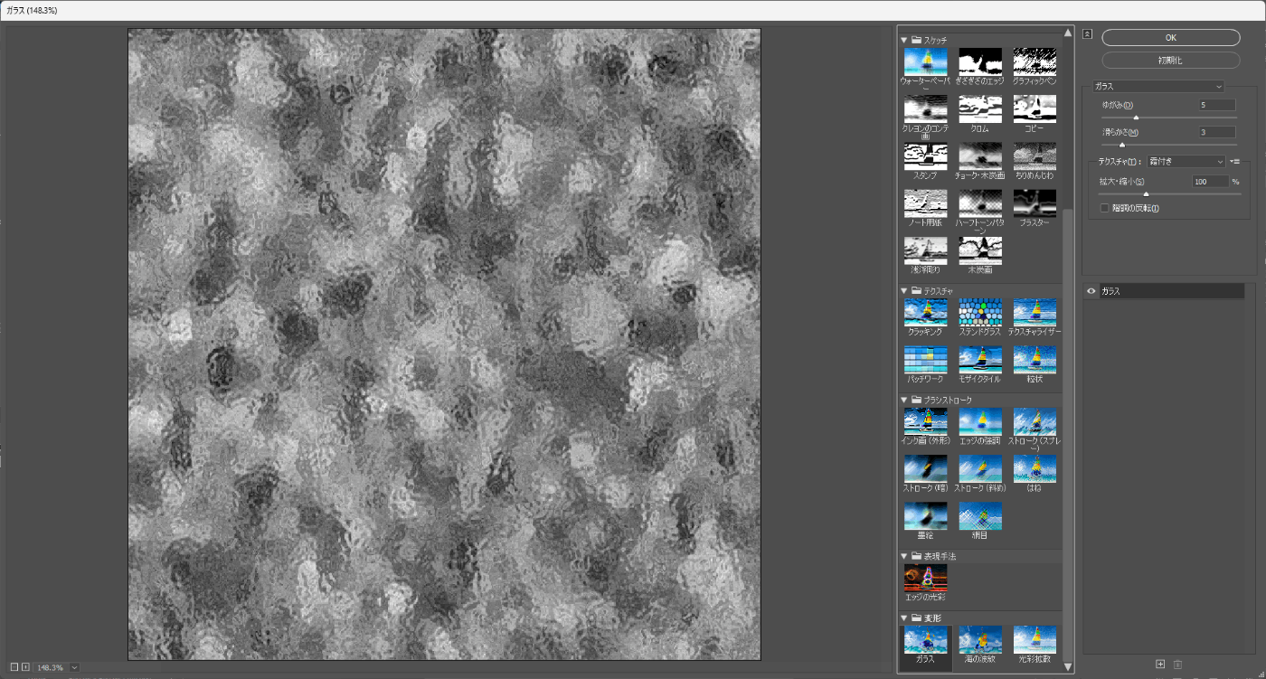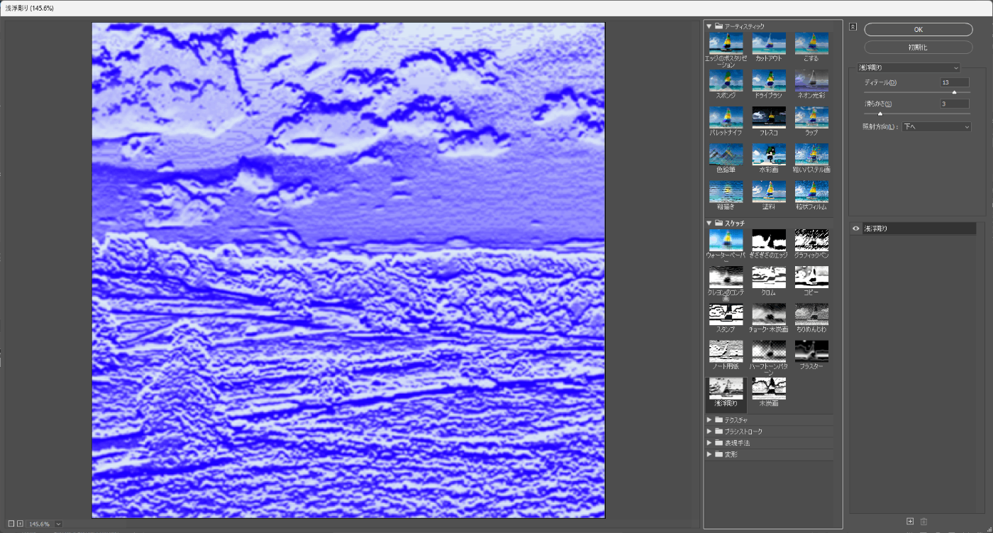 池の水面にできたさざ波のような、波打つパターンを選択範囲に作り出します。