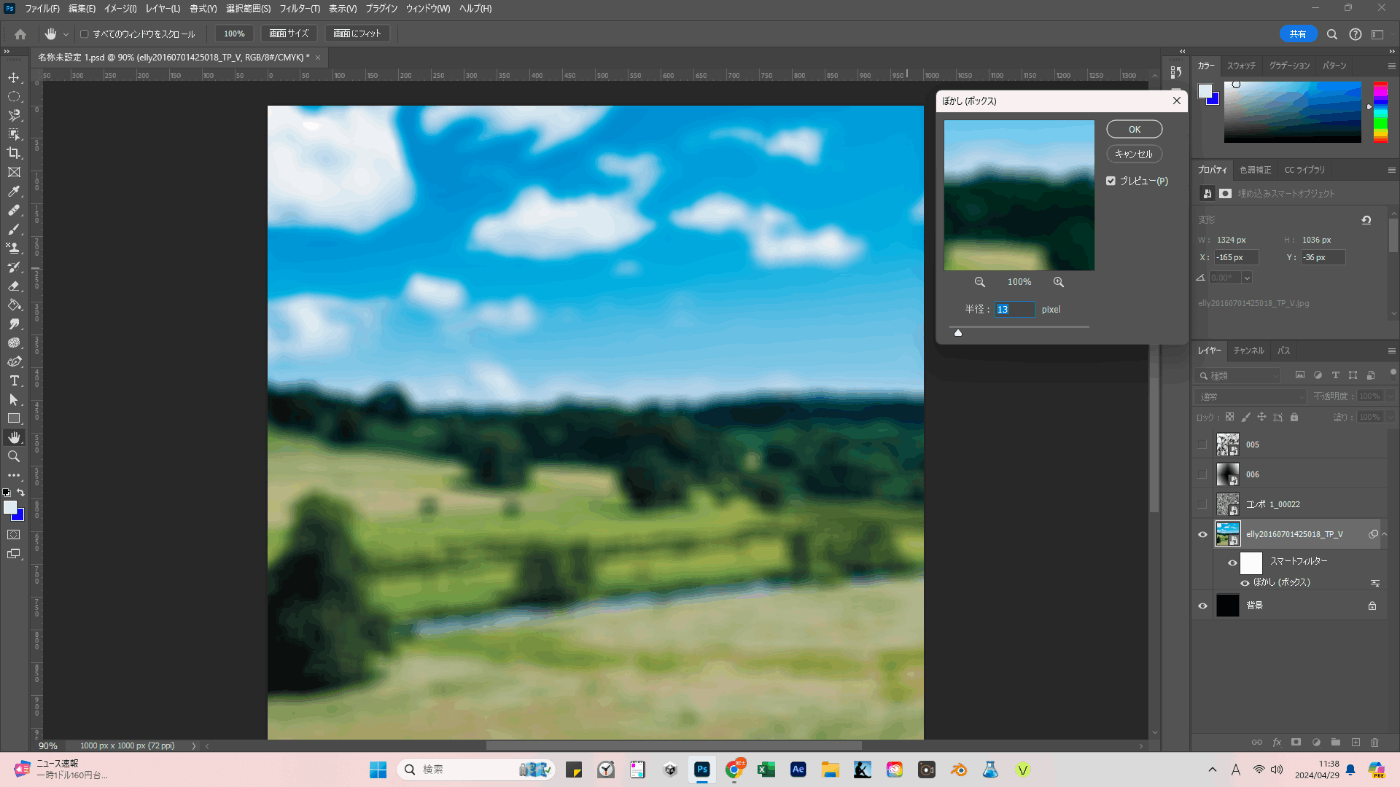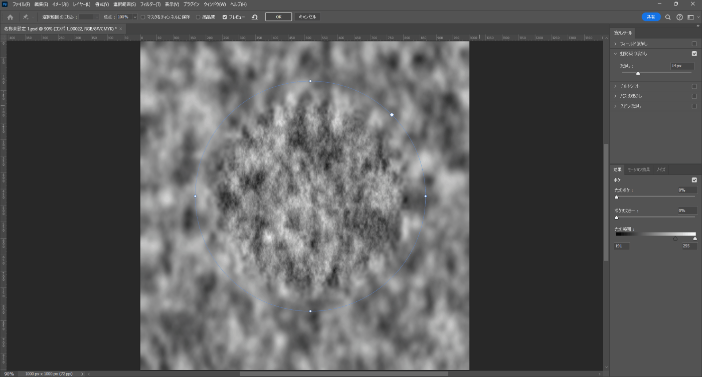 オプションの設定に従って、選択範囲のピクセルを混ぜて焦点を和らげます。