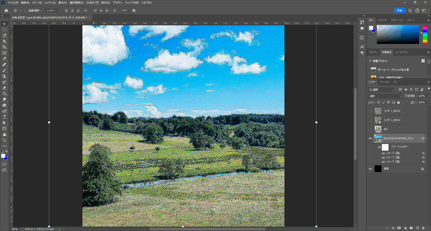 カラーが極端に変化している部分で指定した半径内のエッジのディテールを保持し、それ以外の部分についてはエッジのディテールを抑えます。