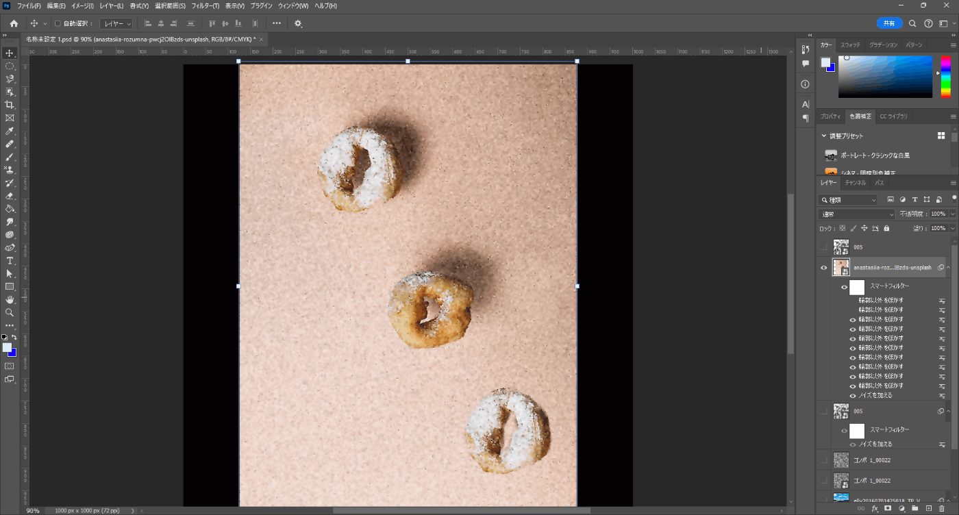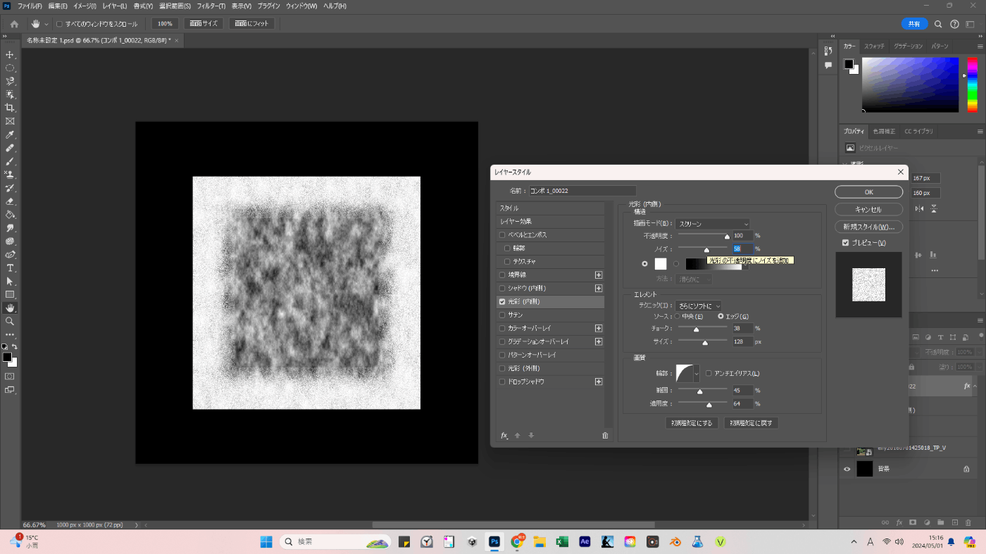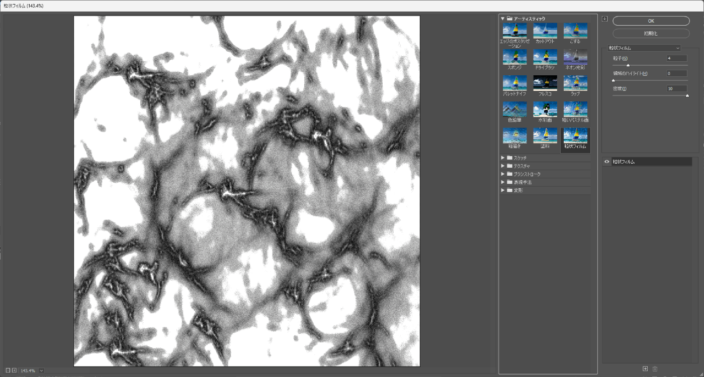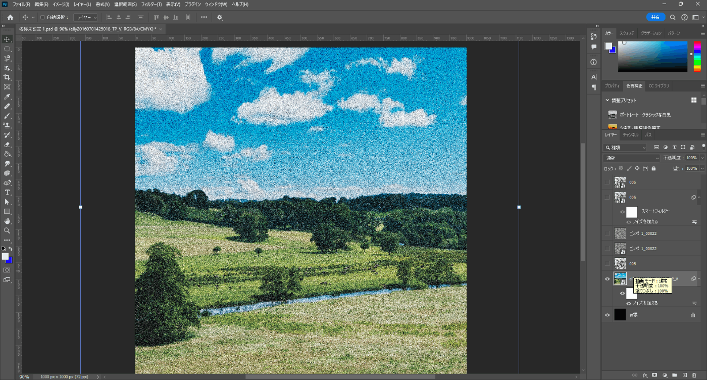 画像にランダムなピクセルを適用し、高感度フィルムで撮影したような効果を加えます。