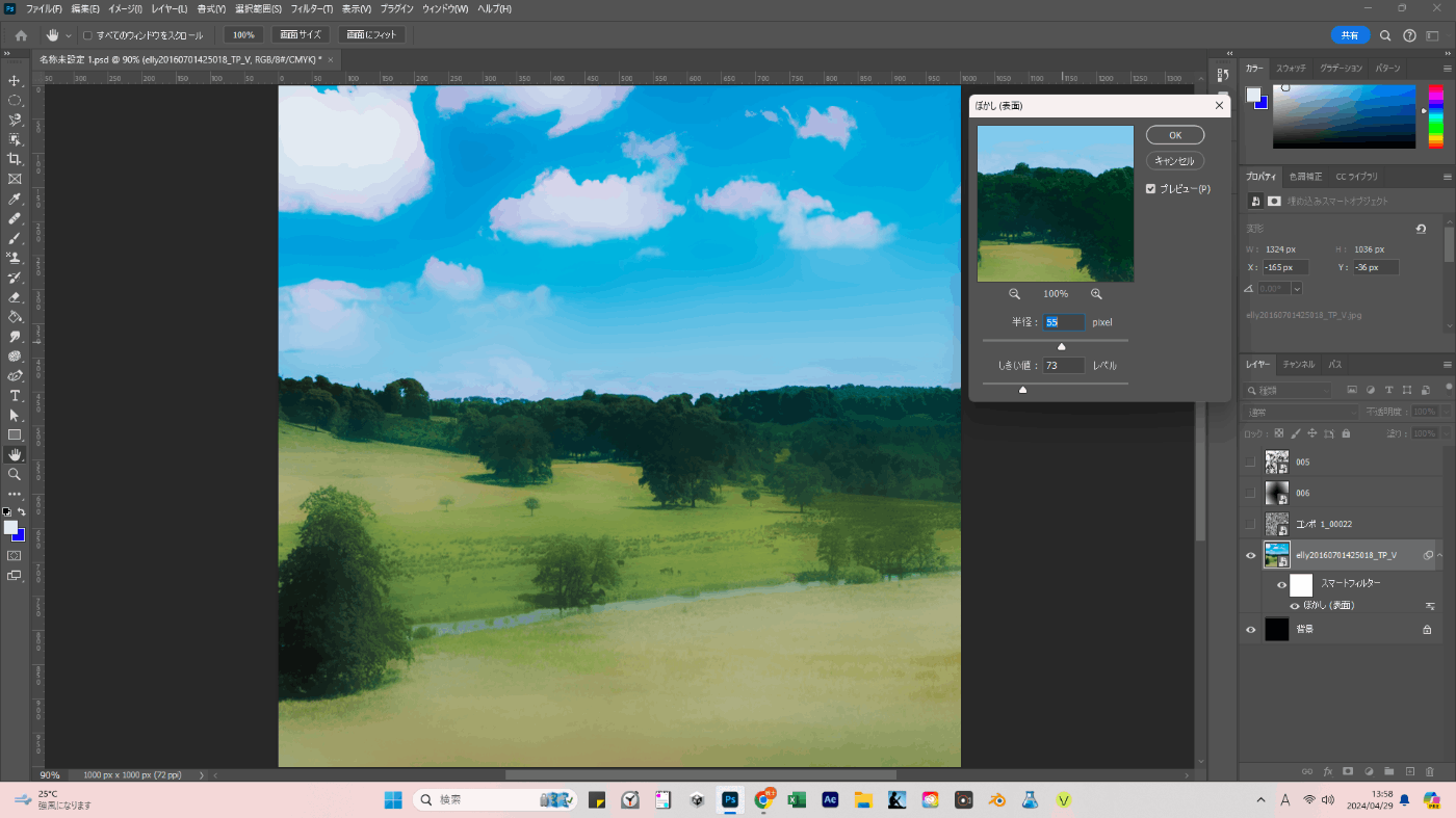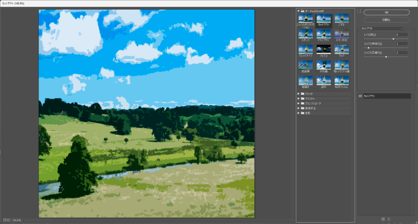 画像のエッジ(カラーが著しく変化する部分)を見つけ、エッジ以外のすべての選択範囲をぼかします。