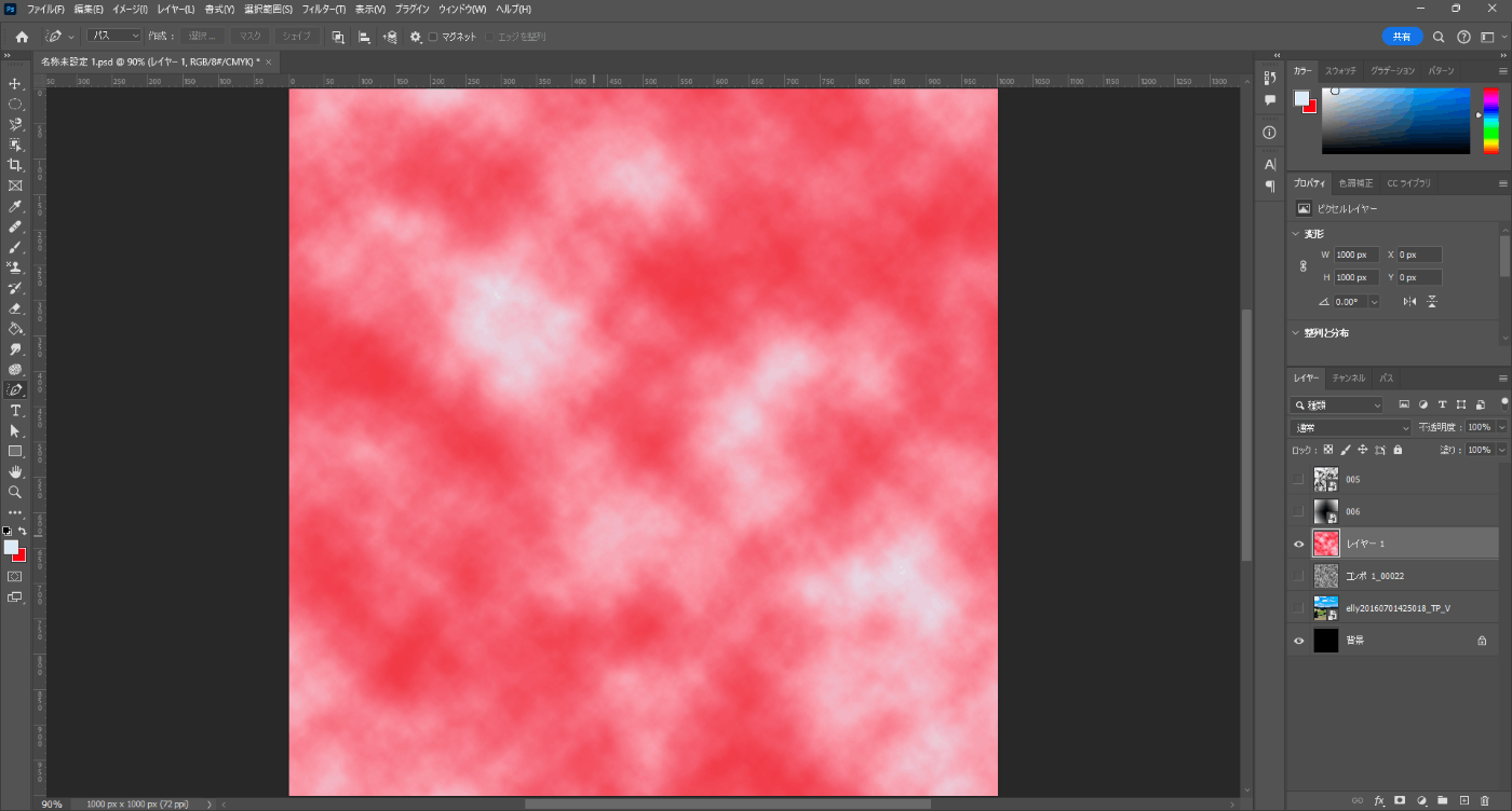 描画色と背景色の間のカラーをランダムに変化させて、ソフトな雲のパターンを生成します。