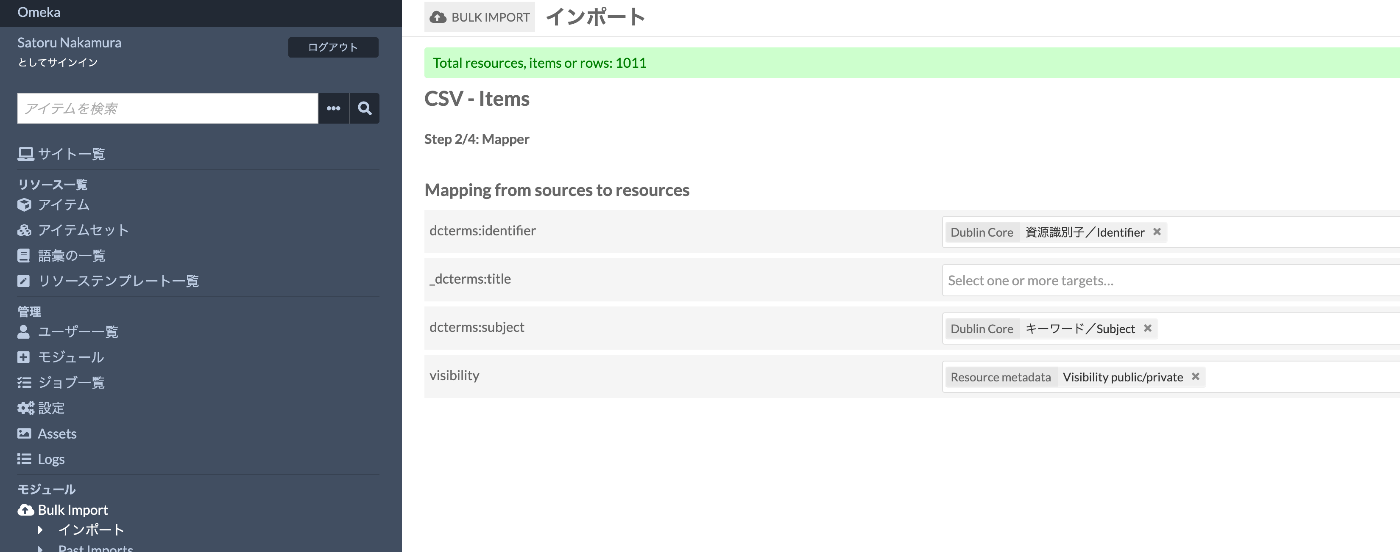 Omeka Sの一括登録用モジュール: Bulk Importの使い方(2024-02版)